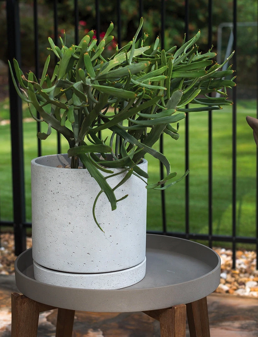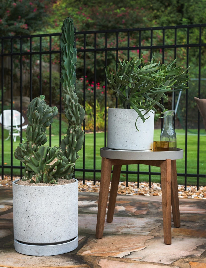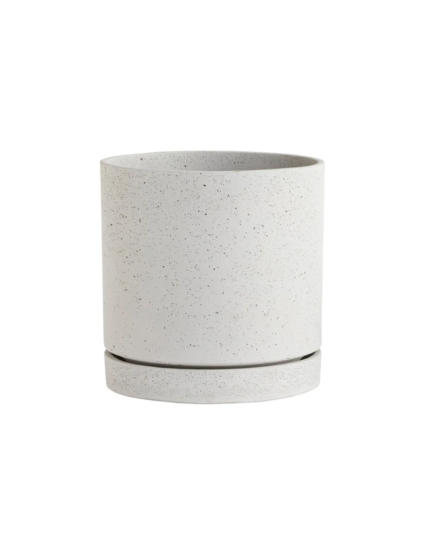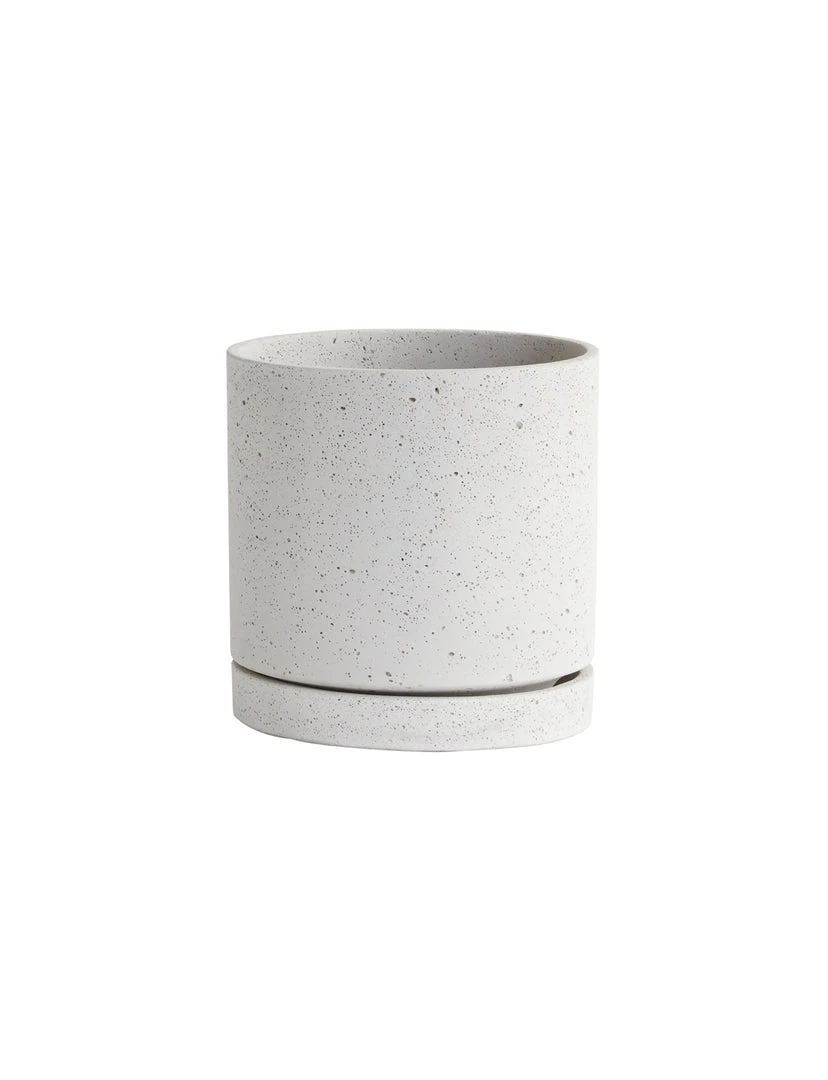 With a modern terrazzo finish, the Callahan Pot is designed for outdoor use. It features a saucer and a drainage hole, and is handmade from cement for a sleek and modern look.
