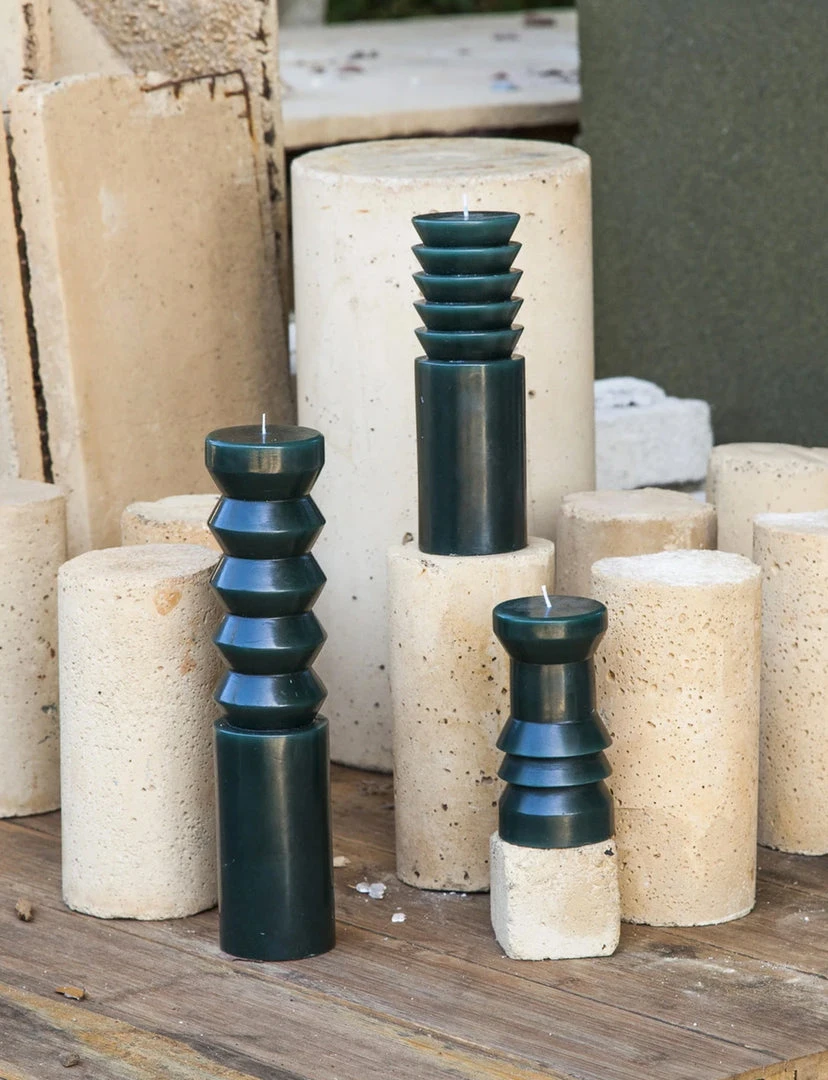 The Totem Candle is cast in unscented paraffin wax from forms originally created by turning beeswax on a lathe. Approximate burn time is 15/25/35 hours depending on the size of the candle. Do not leave burning candle unattended.