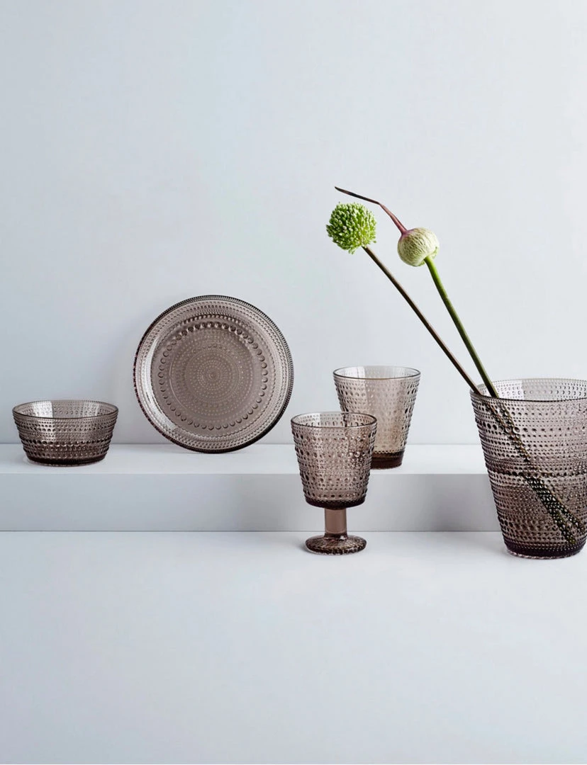 Finnish design legend Oiva Toikka’s pioneering Kastehelmi collection came from his determination to find a design that would hide joint marks in glass. The groundbreaking result was a distinct pattern featuring circles of raised glass droplets that resemble strings of dewdrops glistening under the morning sun. Kastehelmi (“dewdrop” in Finnish) plays with light, truly bringing out the reflective beauty of the glass. Iittala’s beloved Kastehelmi collection offers a wide range of versatile, tactile pieces that are both functional and decorative. The delicate yet durable clear Kastehelmi bowl is perfect for a hearty breakfast, snacks, sides and displaying candy. Collect a set. Great wedding, birthday, anniversary or housewarming gift idea. Dishwasher safe.