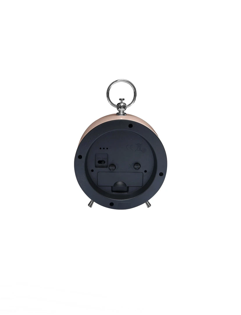 - Design: Classic metal alarm clock with glass lens. Snooze function included. Designed in The Netherlands.