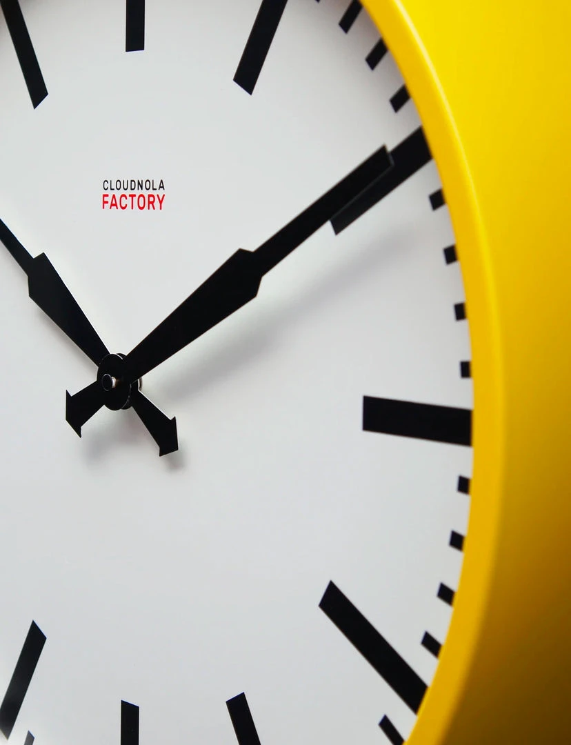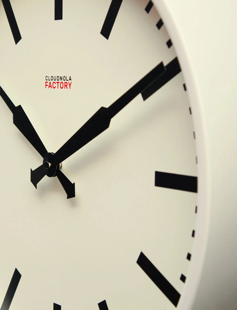 Cloudnola Factory clocks are Renees interpretation of the time-tested station clock. In Cloudnola we are known for high design and modern clocks wall clocks, we got challenged to bring this perspective to a traditional clock and Renee succeeded, you can see the details, the color selection, the dial pattern and all the way down to adding the factory twist to the logo.