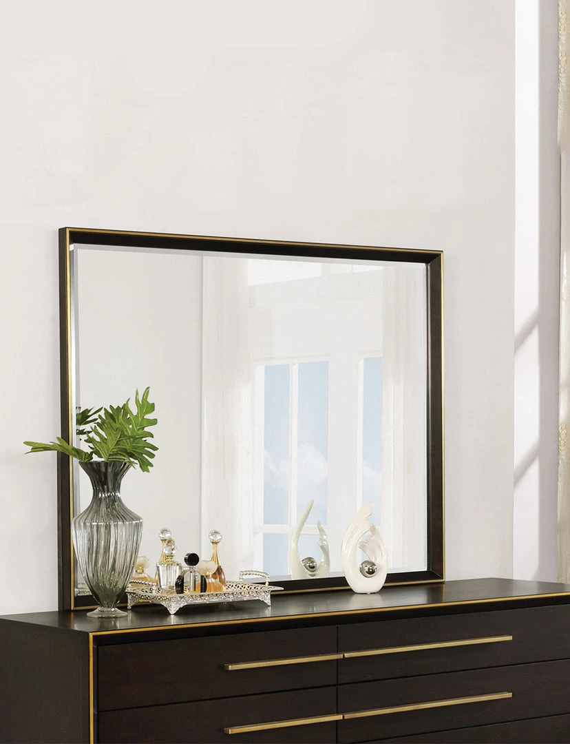 Bring a touch of retro flair to a modern bedroom with this stunning rectangular mirror. In a rich and warm smoke peppercorn finish, its deep hues create a bold visual, perfectly accentuating its silhouette. A smooth frame and profile create a sleek and structured effect, complementing other elongated design pieces. Beautiful over a dresser in a bedroom, the mirror adds sleek and rich color. Open up your space with the contrast between bright, reflective glass and deep, straight lines.