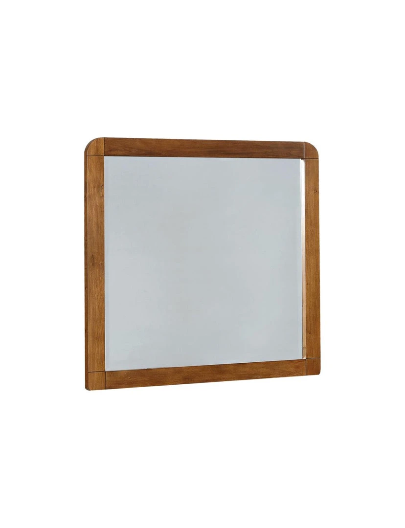 Open up a bedroom with the warm radiance from this retro square mirror. Perfect for a mid-century modern-inspired or contemporary theme, the rounded silhouette adds visual intrigue to a space. Transform a hallway or bedroom with the richness of the dark walnut finish. The center features completely square mirrored glass with embossing. An exposed wood grain creates a slightly rustic feel, full of texture.
