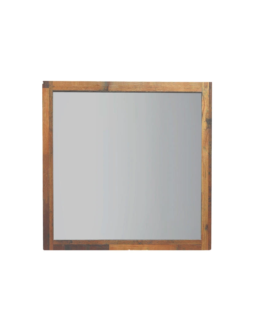 Make your day by indulging in a love of rustic elegance. Notable gradations stand out in the rustic pine finish frame crowning this square wall mirror. Strive for a cabin motif in this contemporary mirror with a pieced frame. Mount it over its matching dresser unit, or create a new style in a bedroom or living space. This inspiring mirror transforms a conventional space into a woodsy cabin setting.
