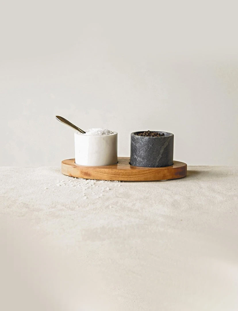 Be the first to review “CREATIVE CO-OP Mango Wood Tray W/ 2 Marble Bowls & Brass Spoon” Cancel reply