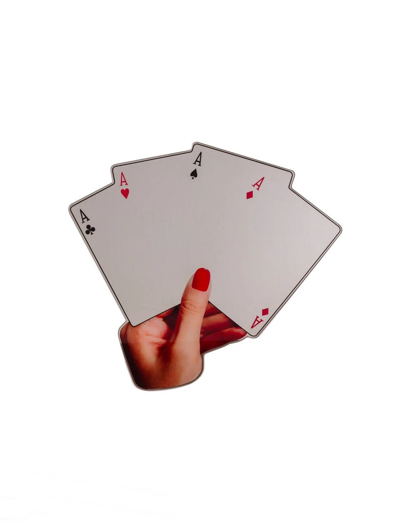 The observer’s hand across the mirror until being part of it. A sarcastic vintage that is actually totally contemporary.