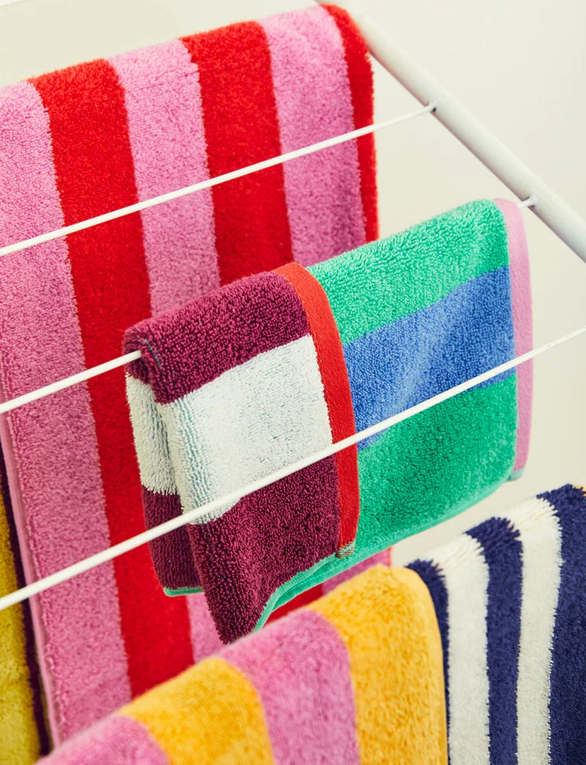Washcloth in new Stripe. 100% brushed cotton terry, reversible striped colorways.