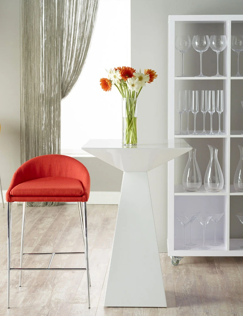 Make a statement with the Tovie bar table. This is one piece that demands to stand out with its cutting angles and a bold geometric shape. Offered in Black, White or American Walnut, three shades with very different but equally interesting effects. Pair it with the Tovie Side Table for an added effect.