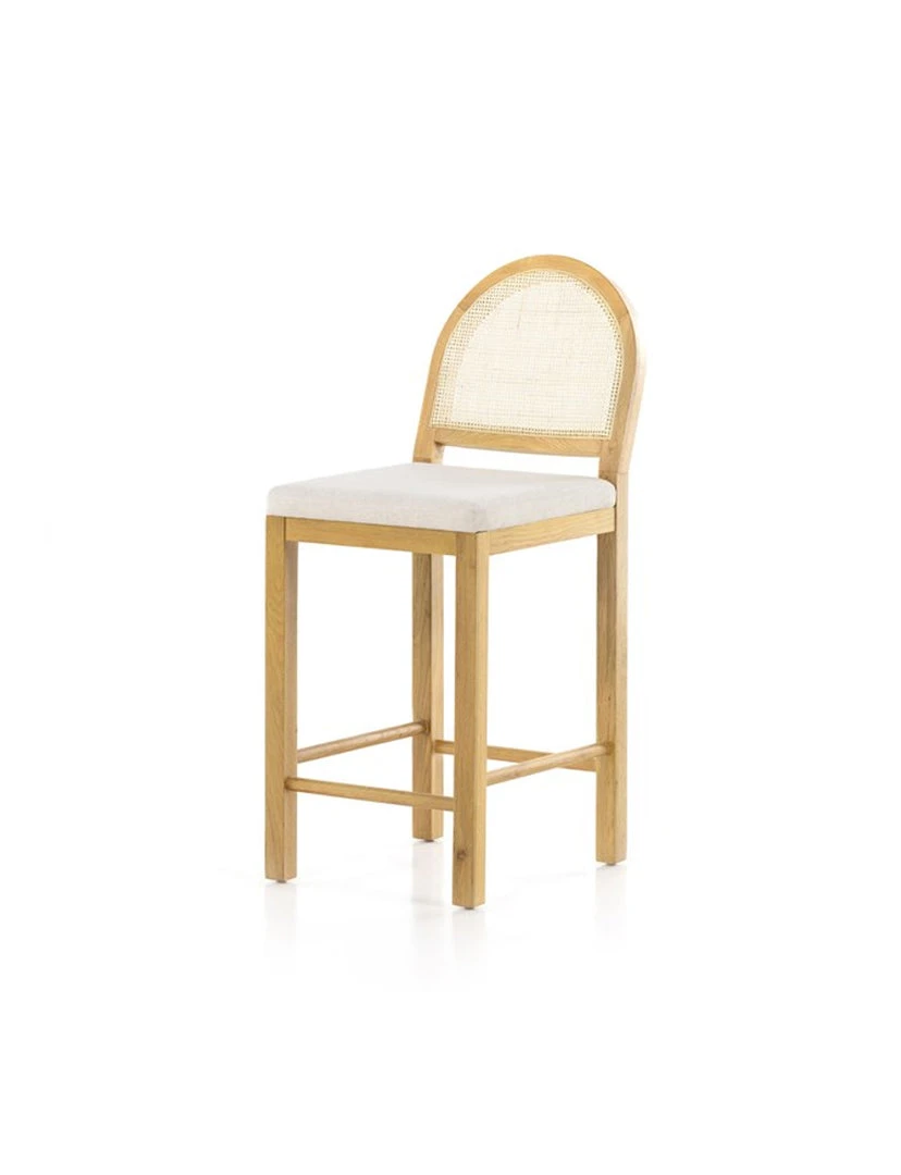 Au naturale. Honey-finished oak forms a beautifully arched, cane-back counter stool, with high-performance seating for stylish sensibility.