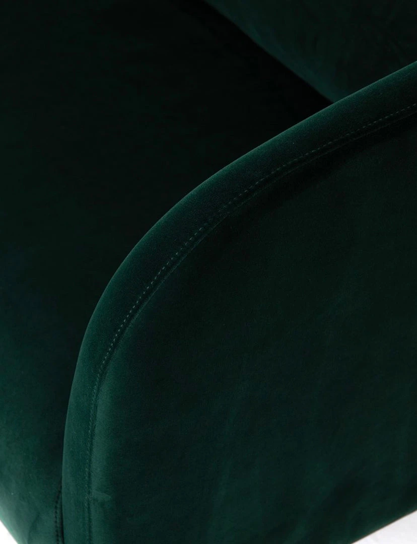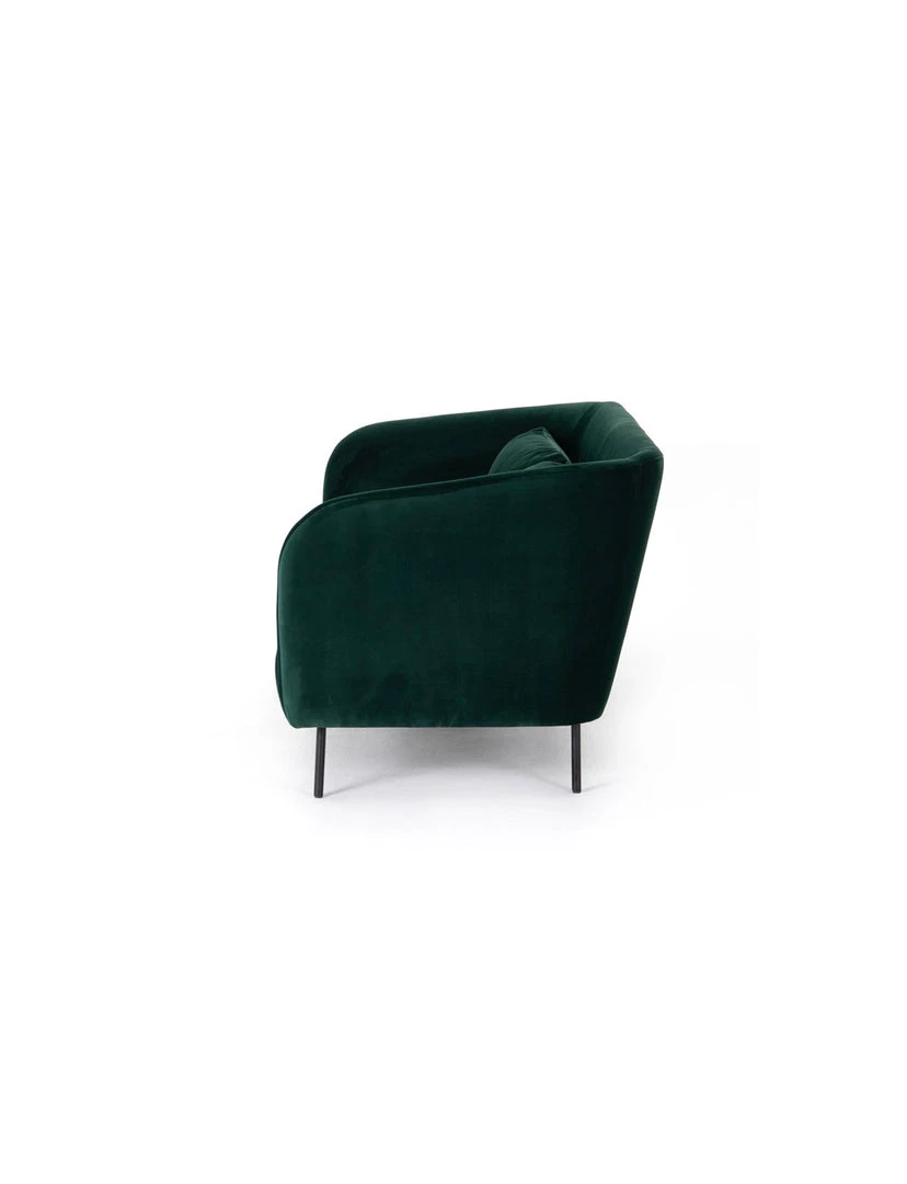 Inspired by both clean Scandinavian design and classic European styling, a curvy frame features an emerald jewel tone for lush modernity. With feather blend bolsters and knife-edge detailing, black-finished steel legs stand tall for a dramatic finishing touch.