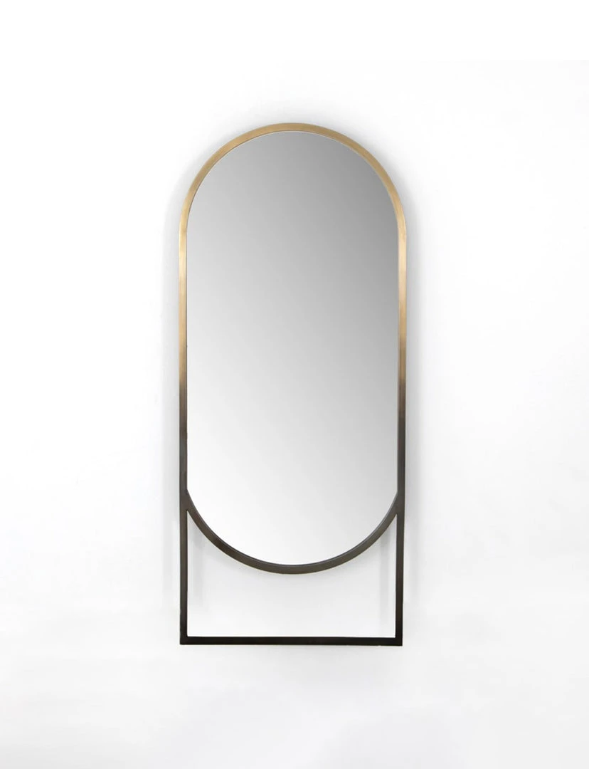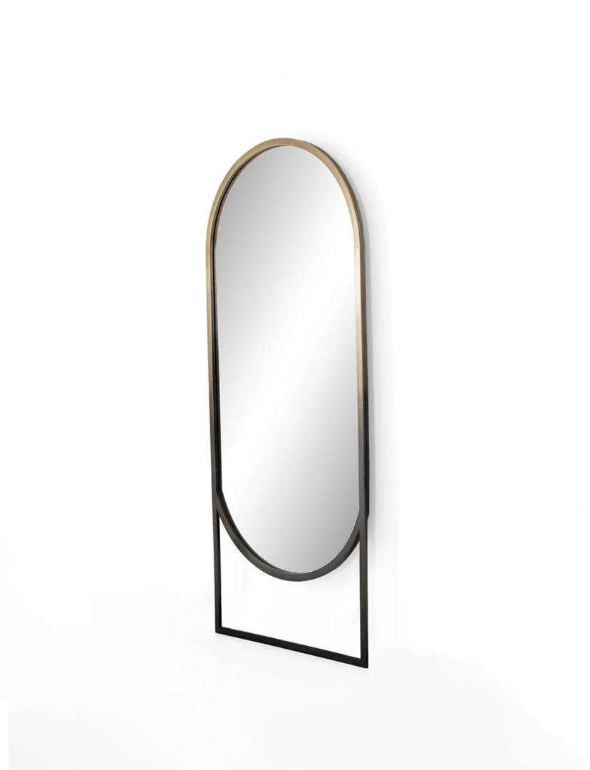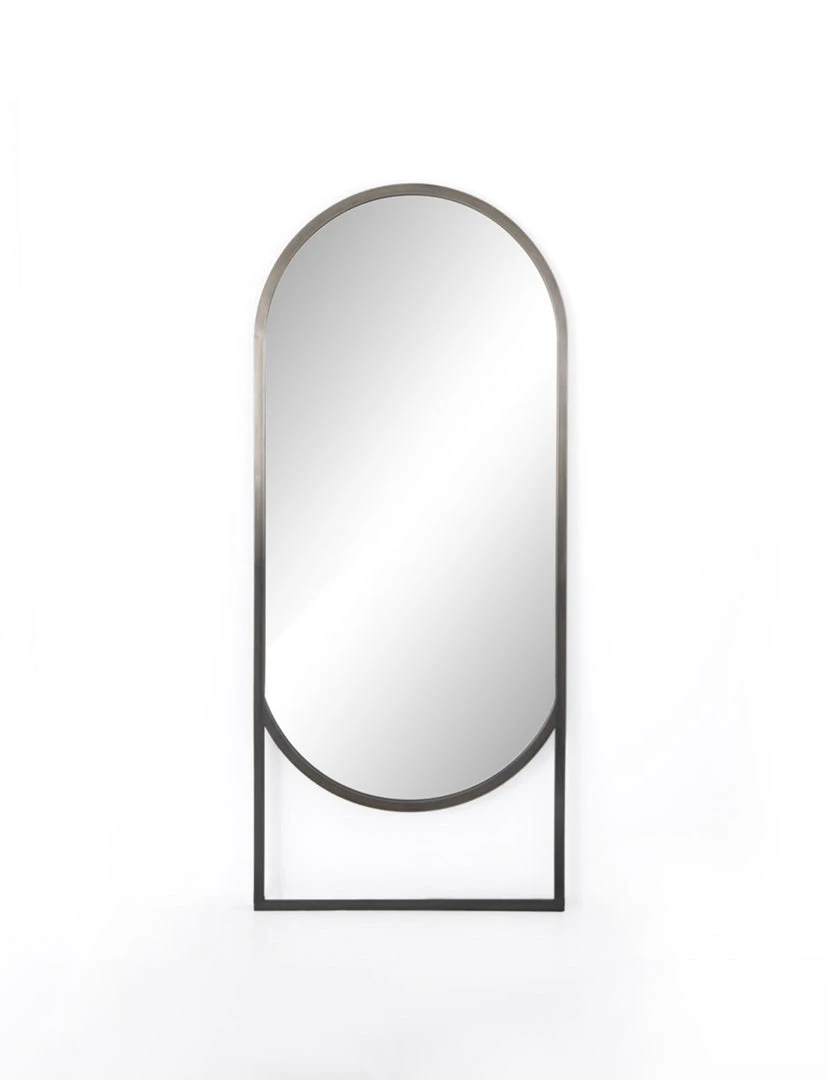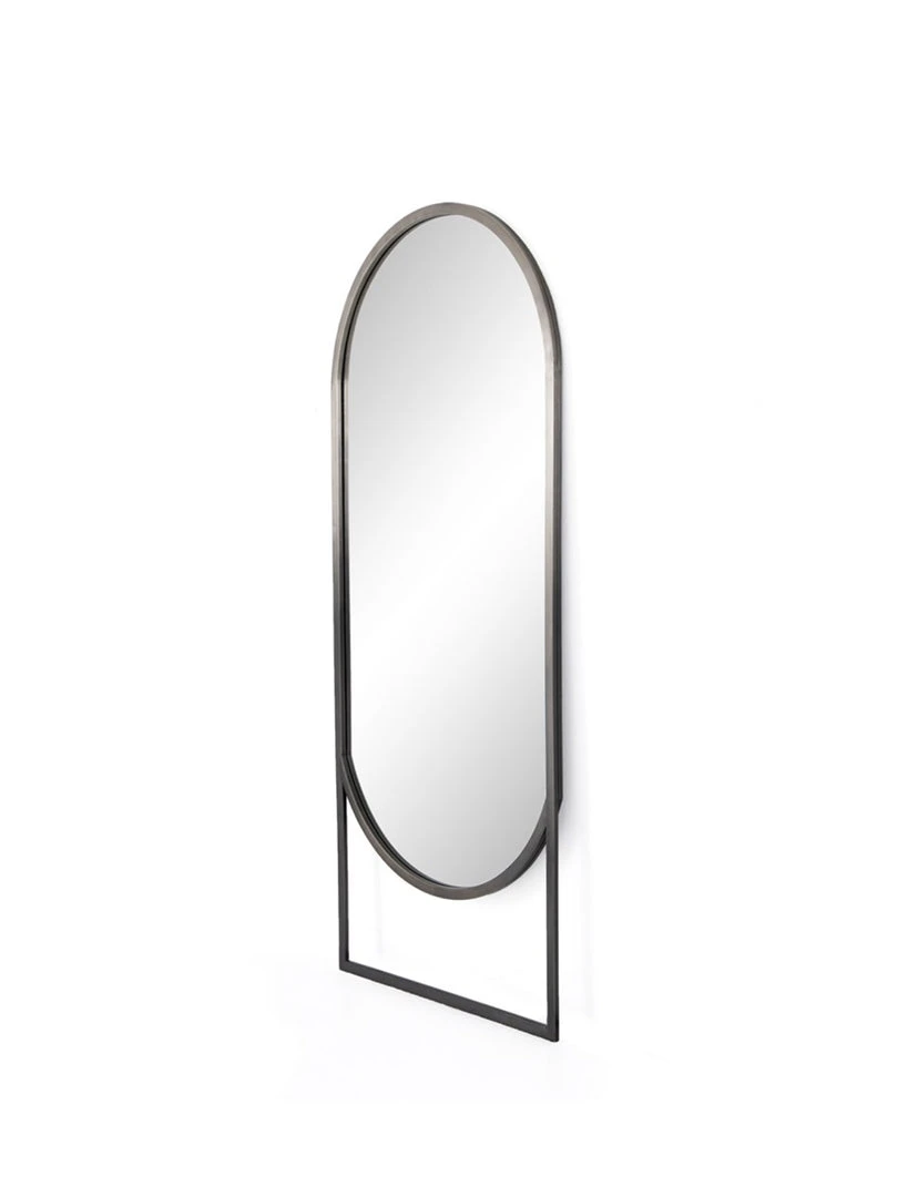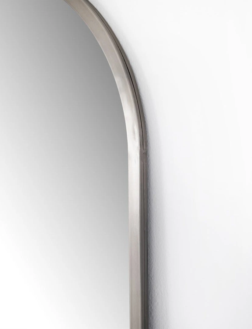 Pewter-finished steel forms an arched silhouette, reflecting elegance in the entryway, bedroom and beyond.