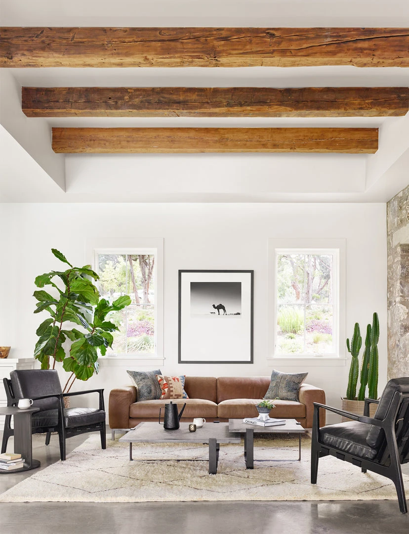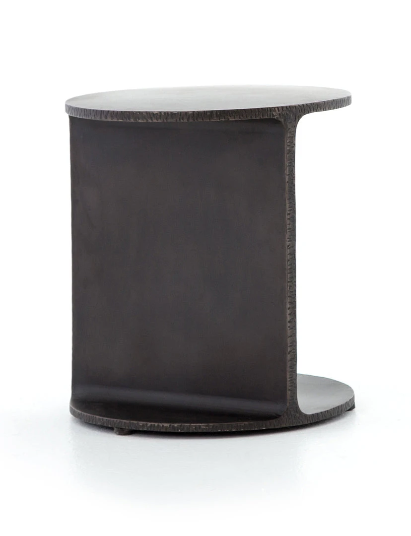 Edge from every angle. Flat stock iron is finished in a rustic fossil tone for a natural take on industrial-minimalist design, both smooth and textural at the same time.