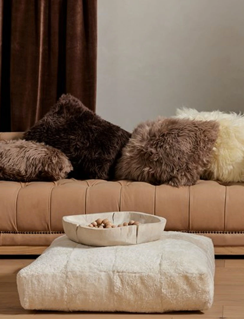 Toss in texture and extra seating alike, with a shorn sheepskin pouf, perfect for family movie nights or hosting casual company.