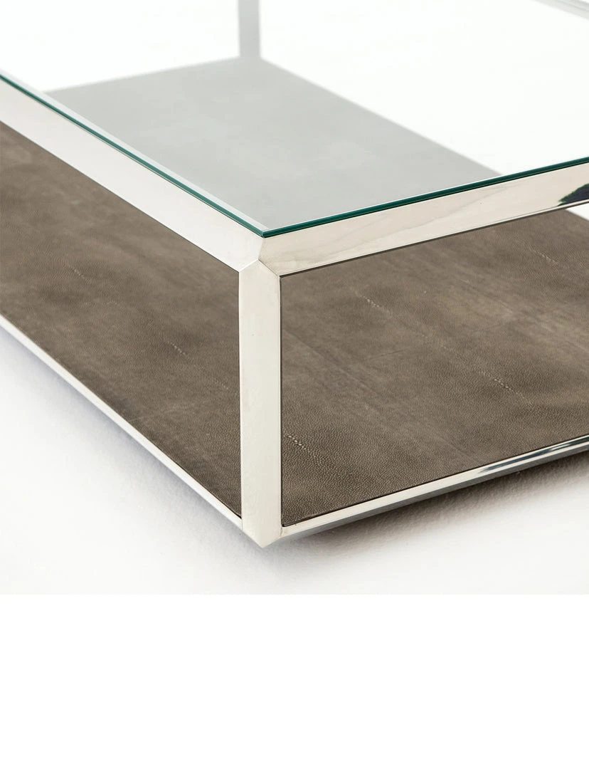 - Colors: Stainless Steel, Brown Shagreen, Tempered Glass, Antique Brass, Grey Shagreen, Tempered Glass, Brushed Gunmetal, Ivory Shagreen