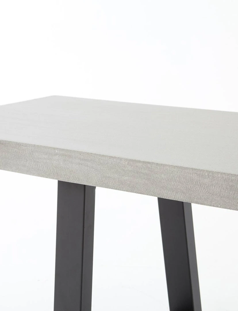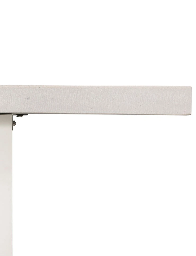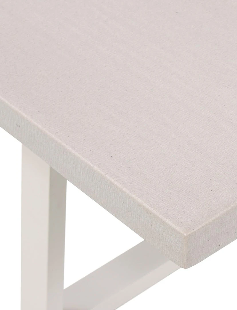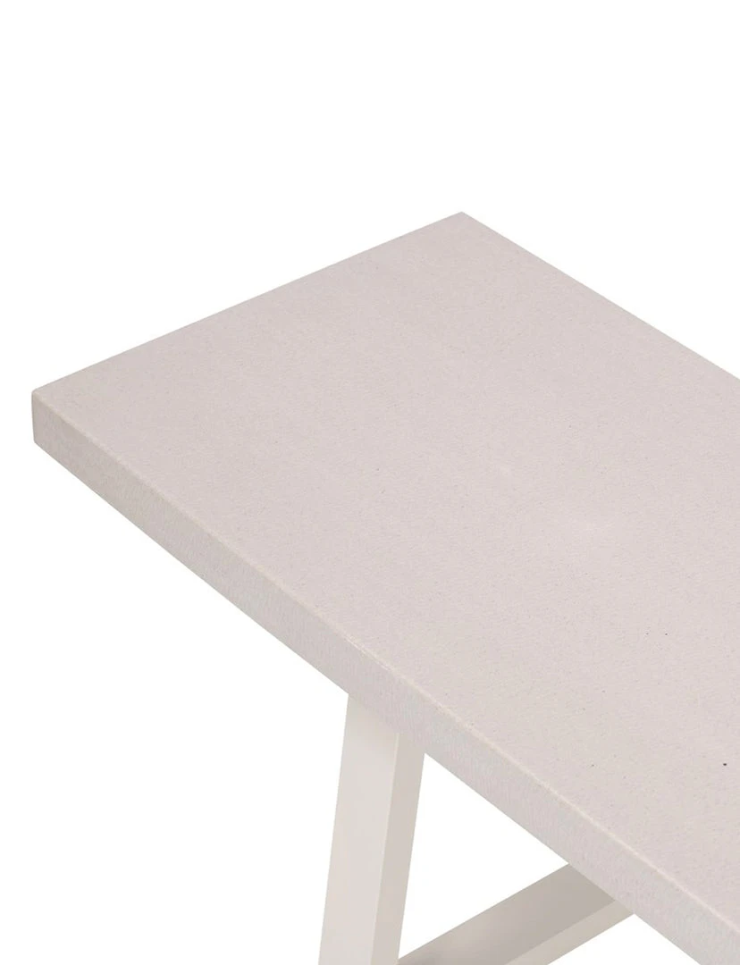 A strikingly simple poly-resin bench derived from river sand is polished to a smooth sheen. Angled, natural white iron legs add architectural appeal to bench-style seating. Great solo or paired with Linear Dining Table, indoors or out. Slight color variance is to be expected, and speaks to lava stone’s organic nature. Cover or store indoors during inclement weather and when not in use.