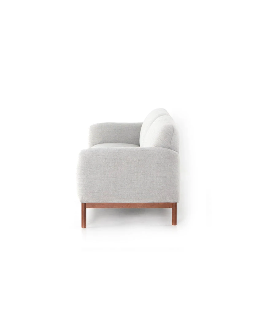 The quintessential lounger. Cushy and shapely, a moss-colored covering lends freshness to sink-in sofa seating. A simple solid oak frame keeps things looking crisp and clean.