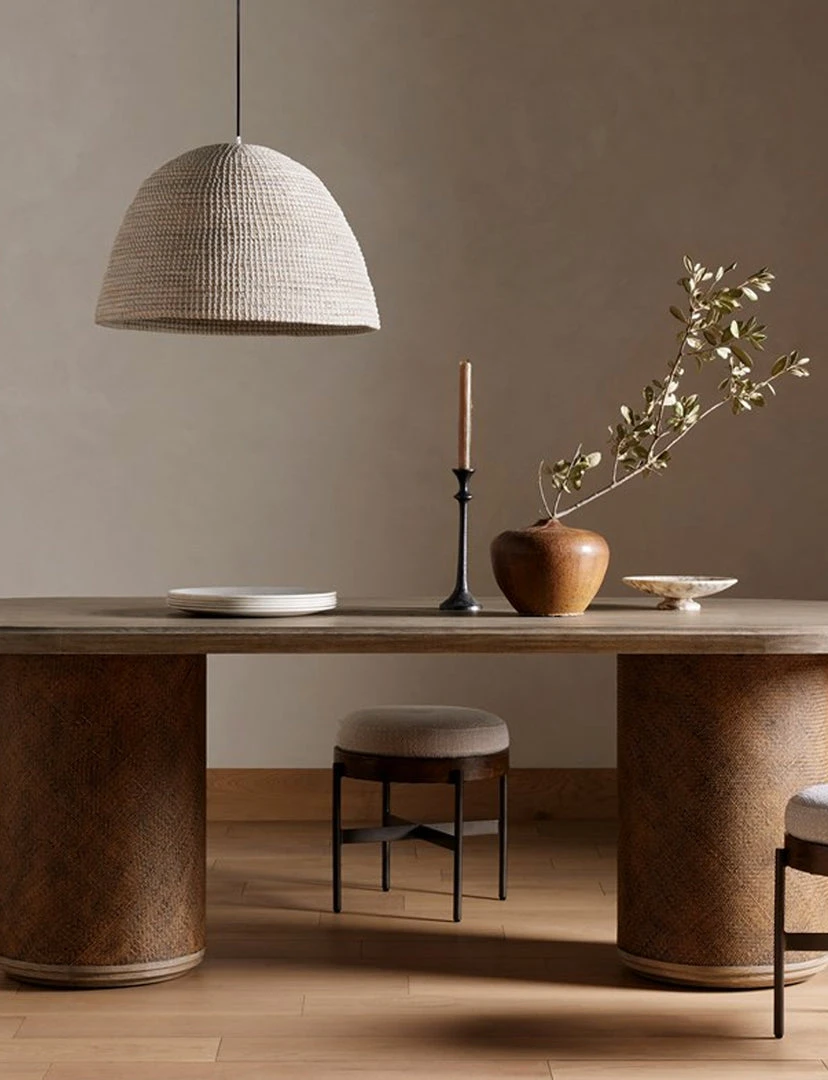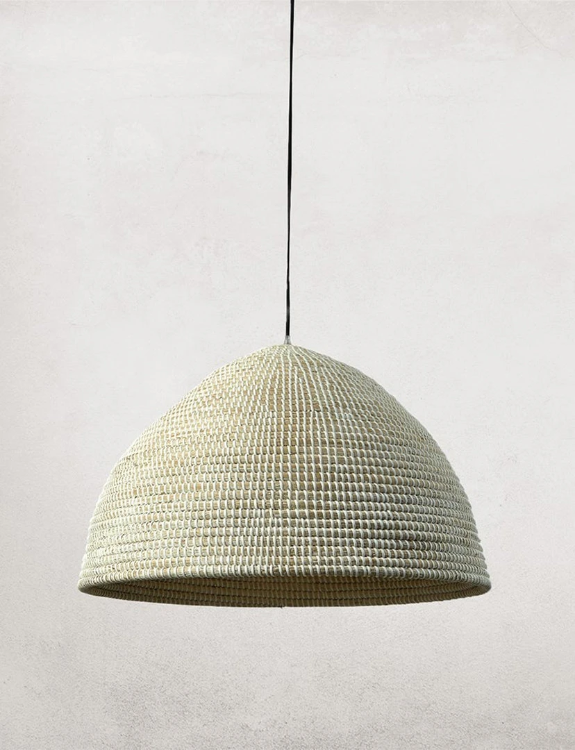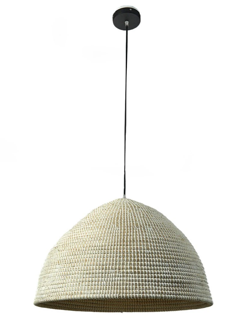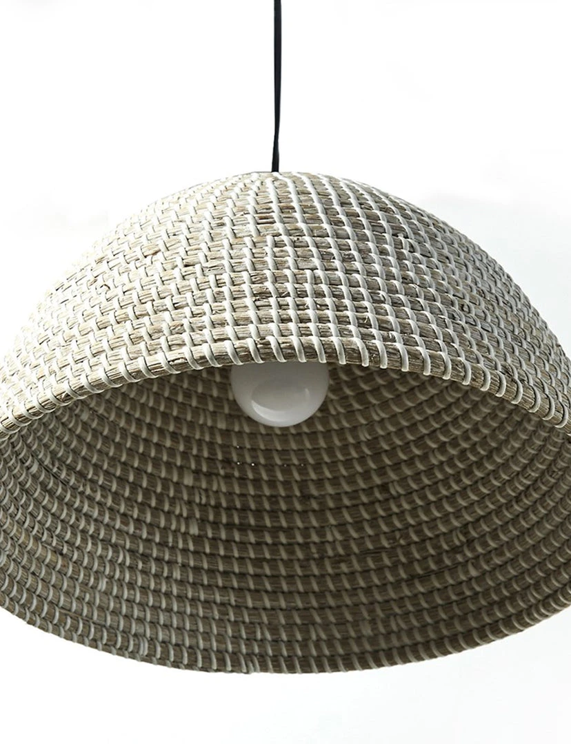 Woven seagrass brings an organic touch of nature and texture to this domed pendant lighting, and to any space