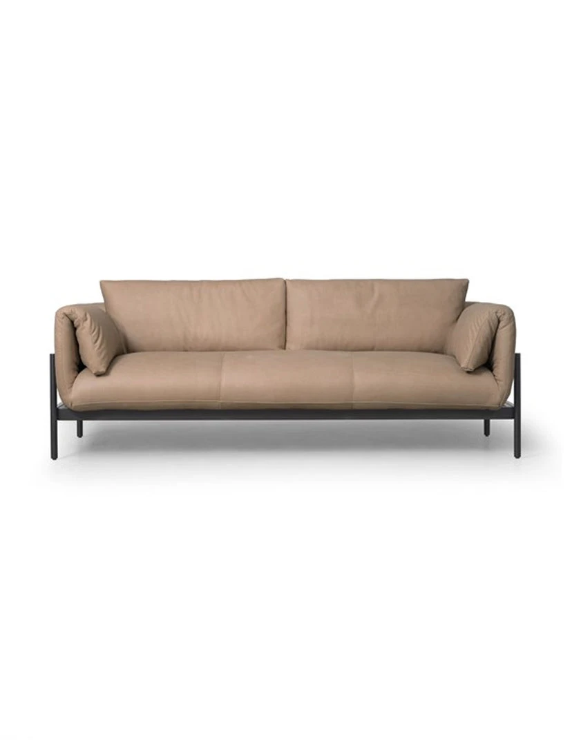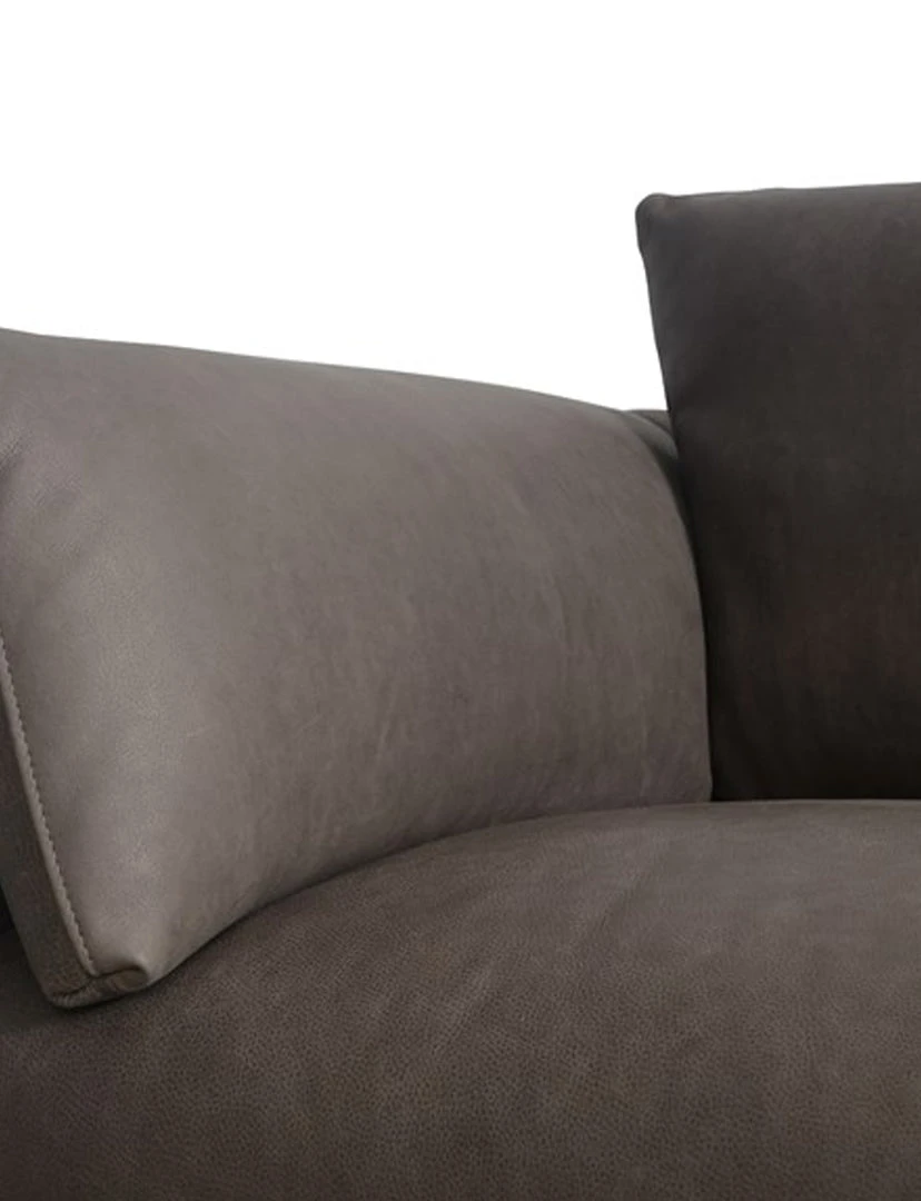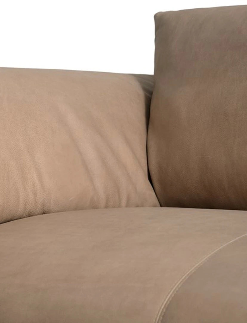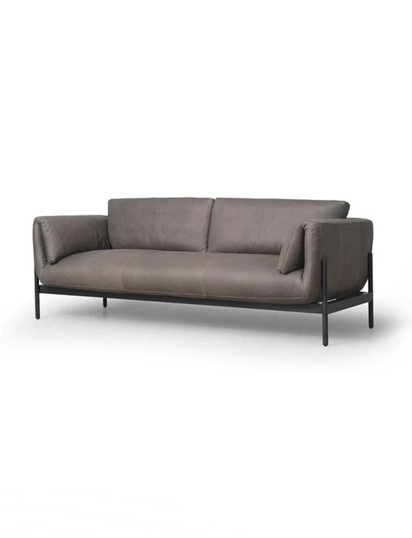 A softer, more modern take on a classic silhouette. Plush cushioning and unique foldover arm details are upholstered in our rich, buttery soft 100% top-grain leather. Matte iron base adds just the right amount of contrast.