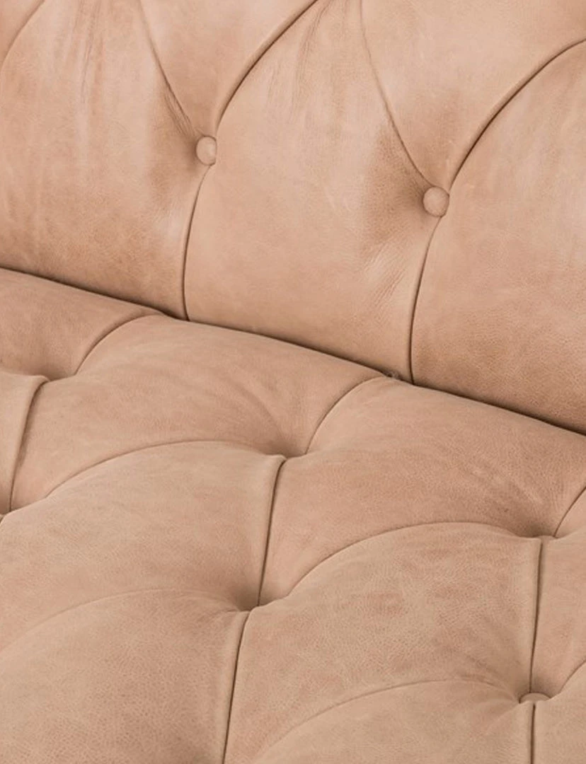 - Taupe Materials: Top Grain Leather, Solid Parawood, Iron