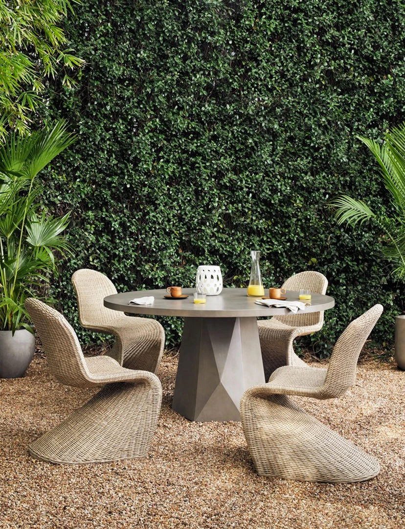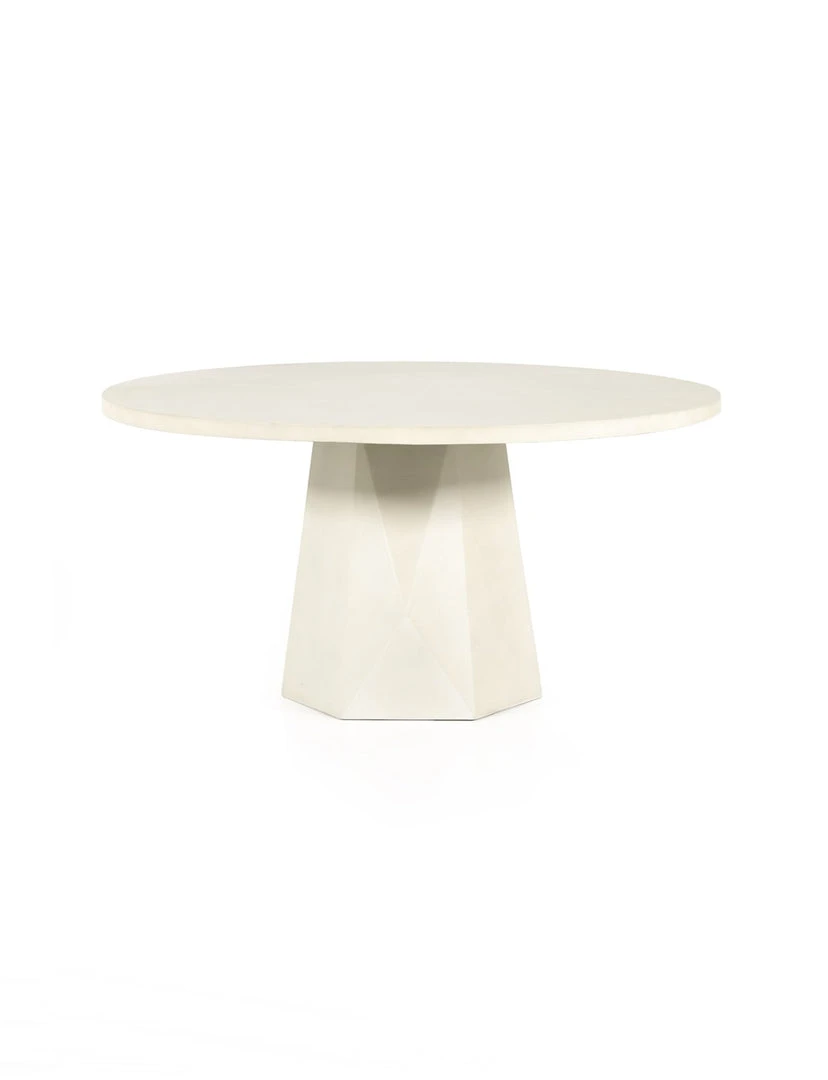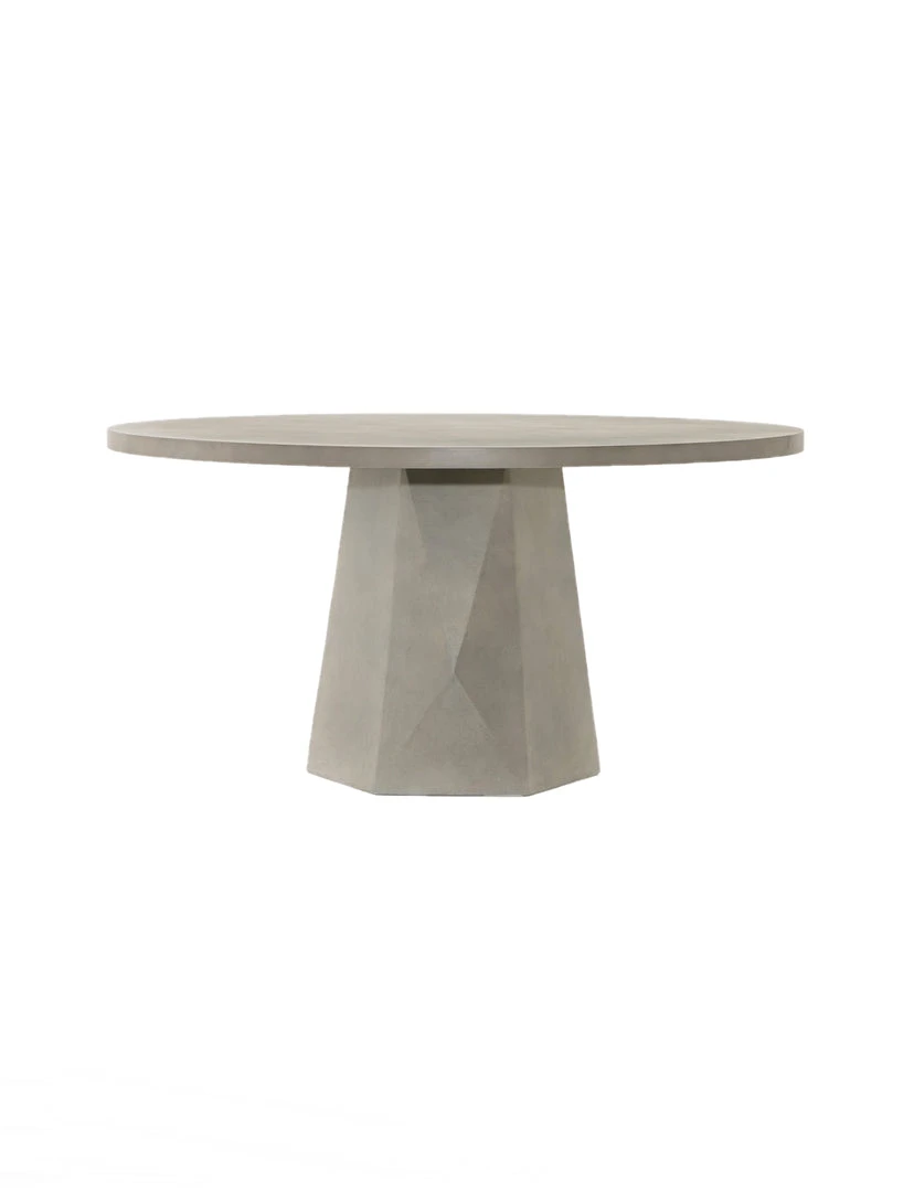 White-finished & Grey-finished concrete forms a faceted base for impact from every angle. A roomy, rounded top is ready to welcome guests indoors or out. Cover or store inside during inclement weather and when not in use.