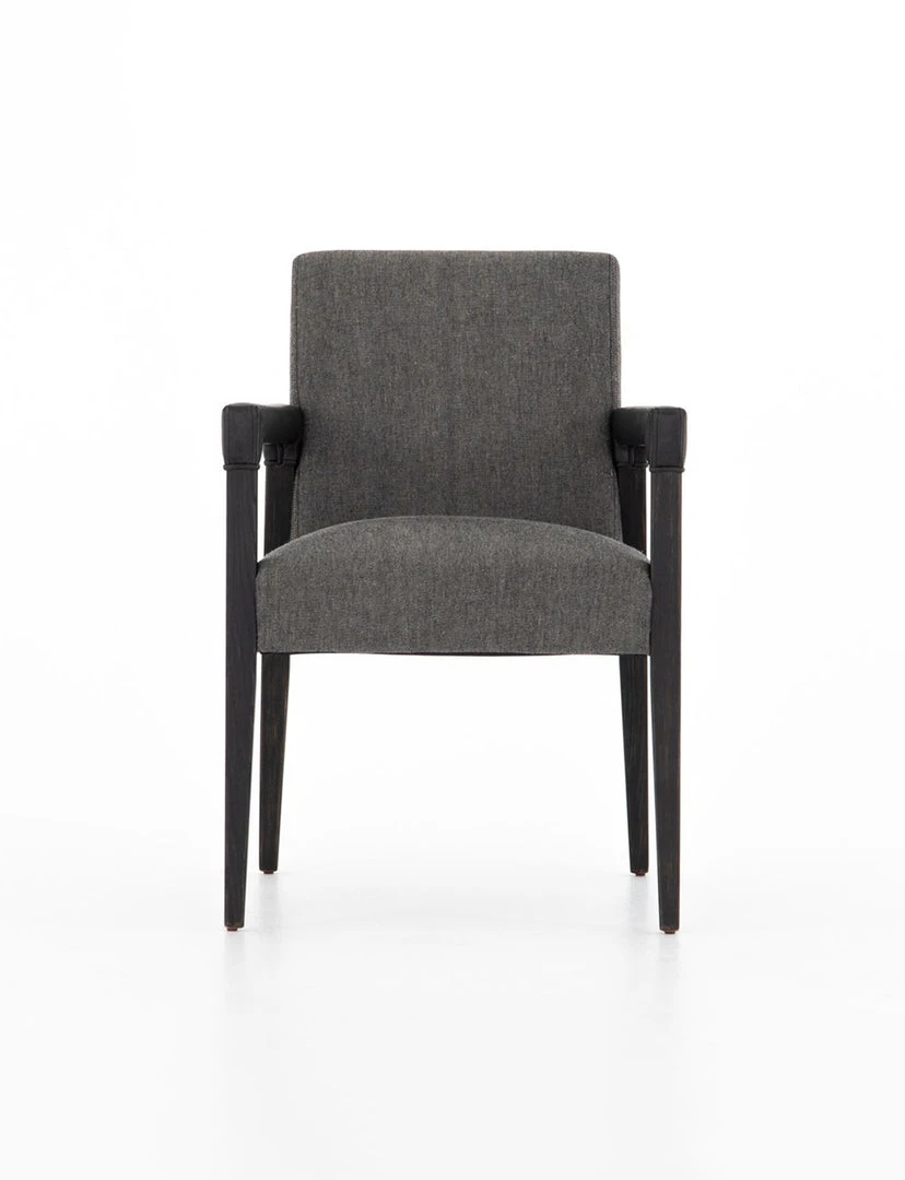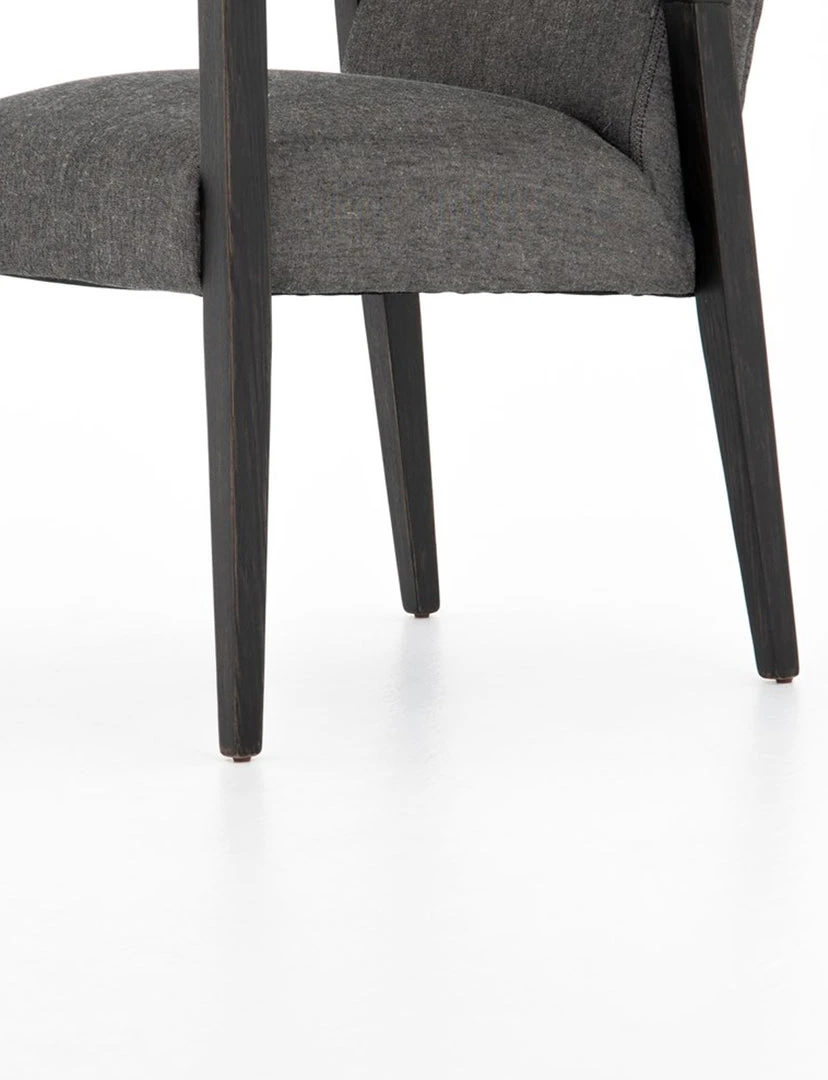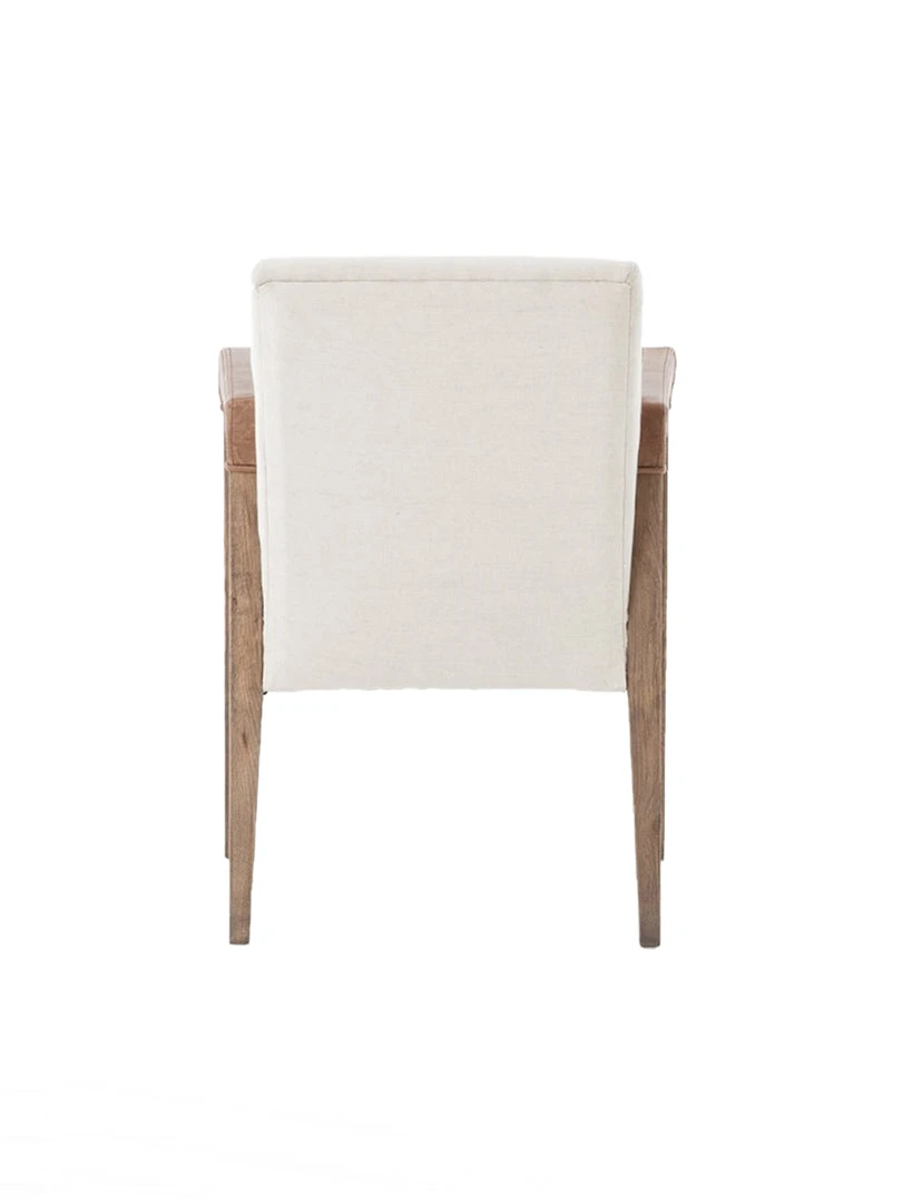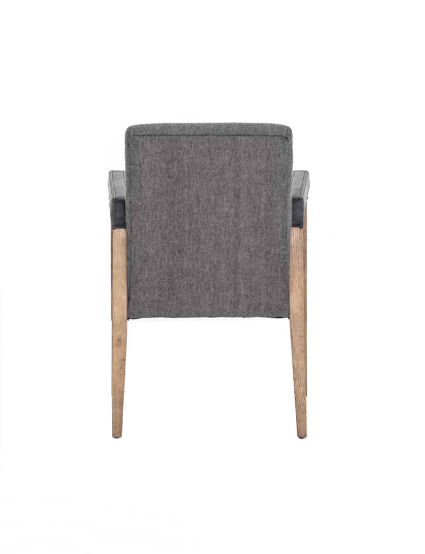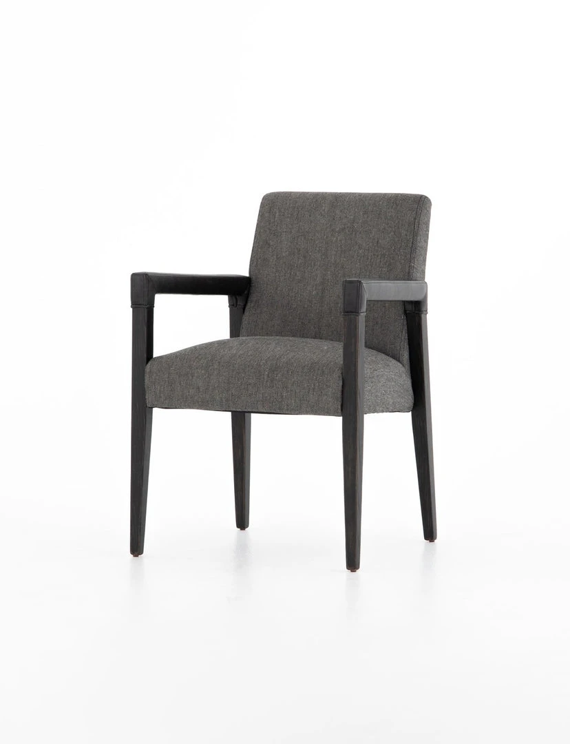 Elegance is no exaggeration. Slim, tapered oak with arms wrapped in smoky top-grain leather frames a floating hemp-blend seating, for a fresh material mix.