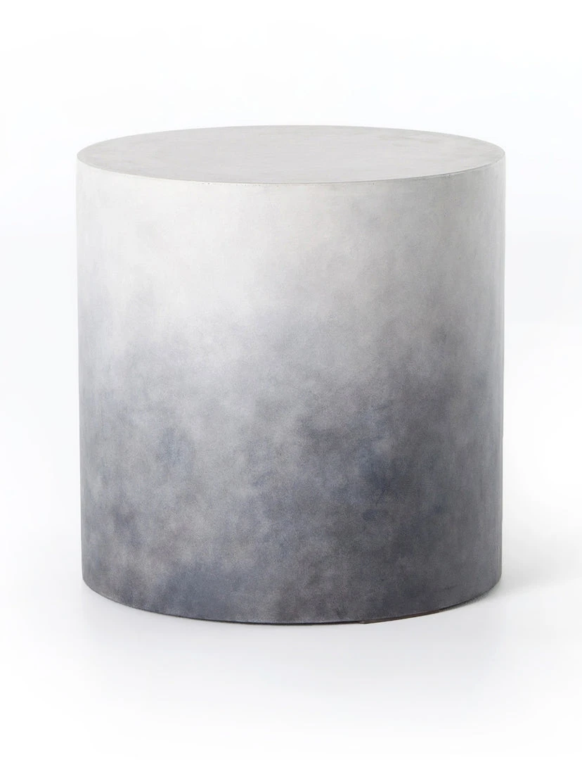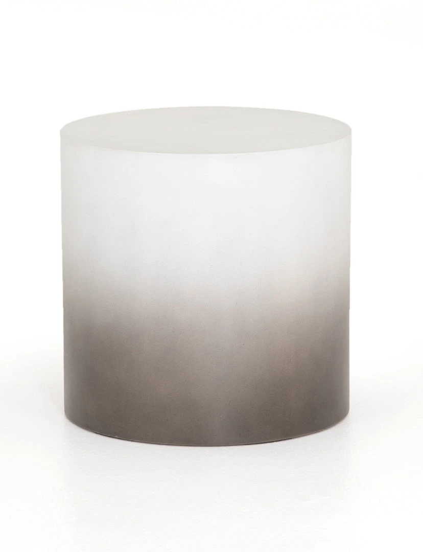 Ombre finishes transform industrial materials. Concrete takes on alluring shapes — rounded, polished, and finished in a slate grey. This end table makes a modern statement indoors or in protected outdoor spaces. Cover or store indoors during inclement weather and when not in use.