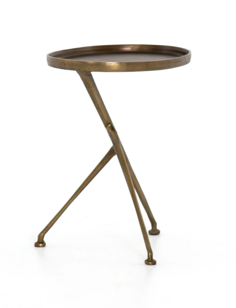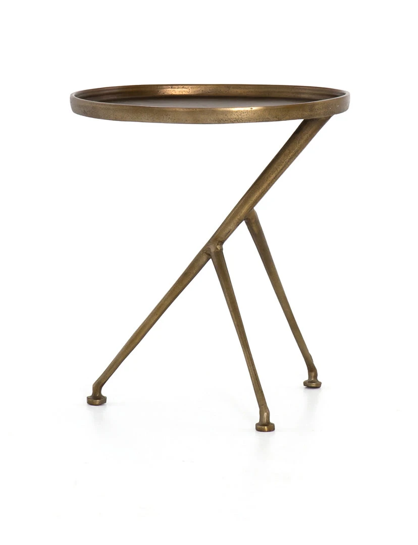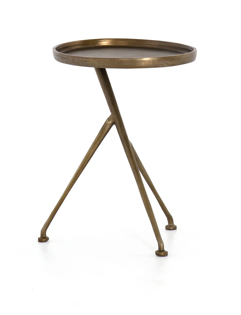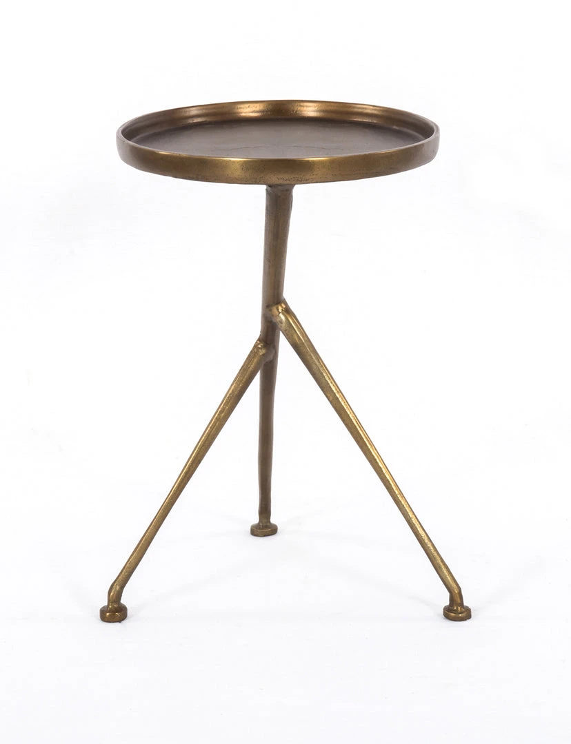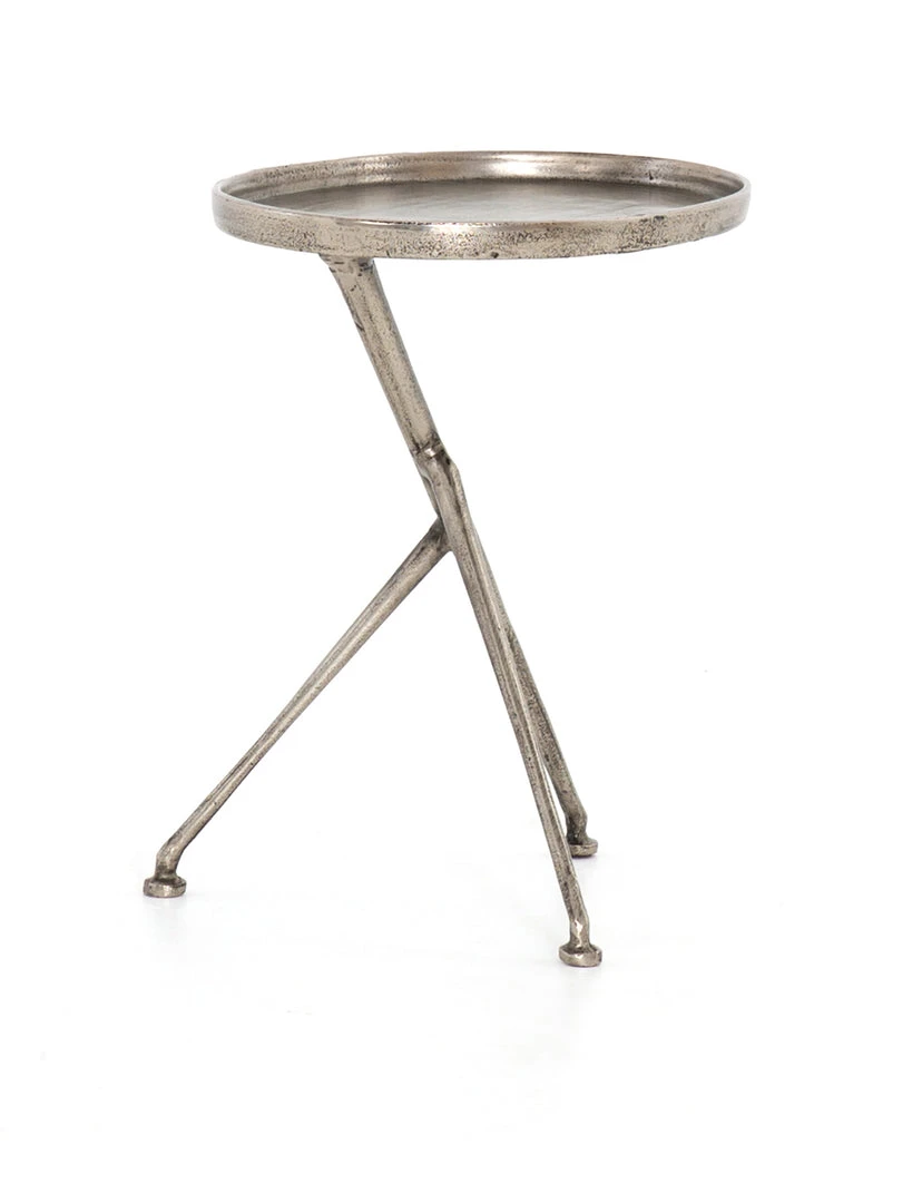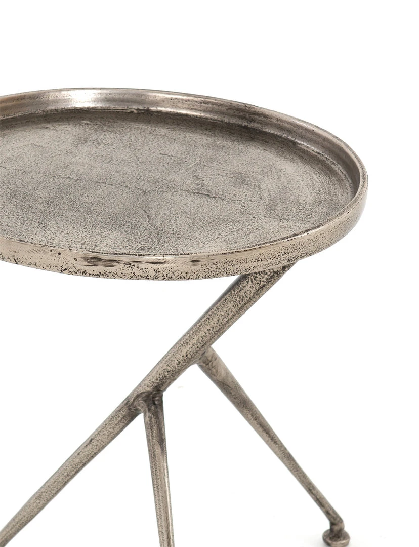 The tripod table with a cleverly balanced twist. Angular cast aluminum is finished in antique rust to bring out highs and lows. Great indoors or out – cover or store indoors during inclement weather and when not in use.