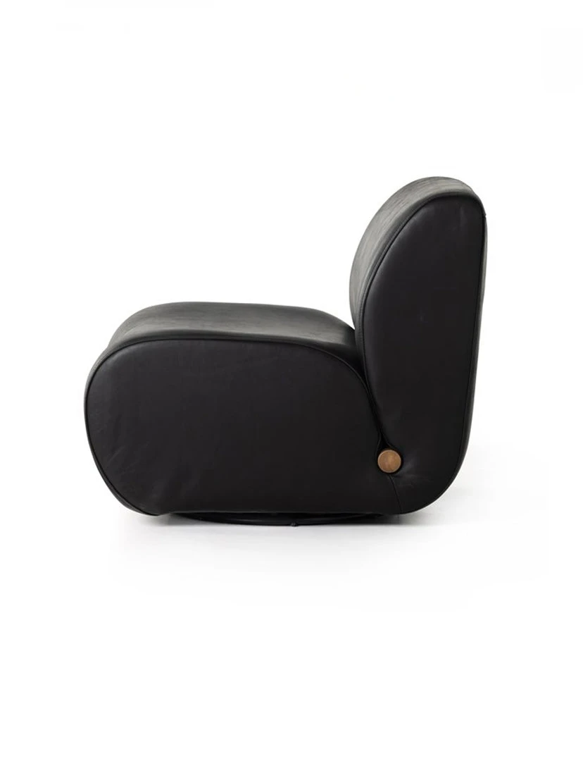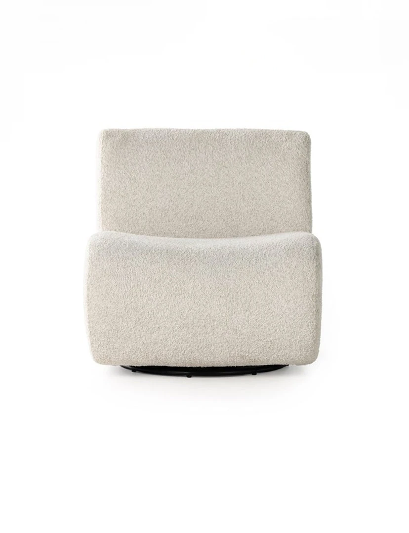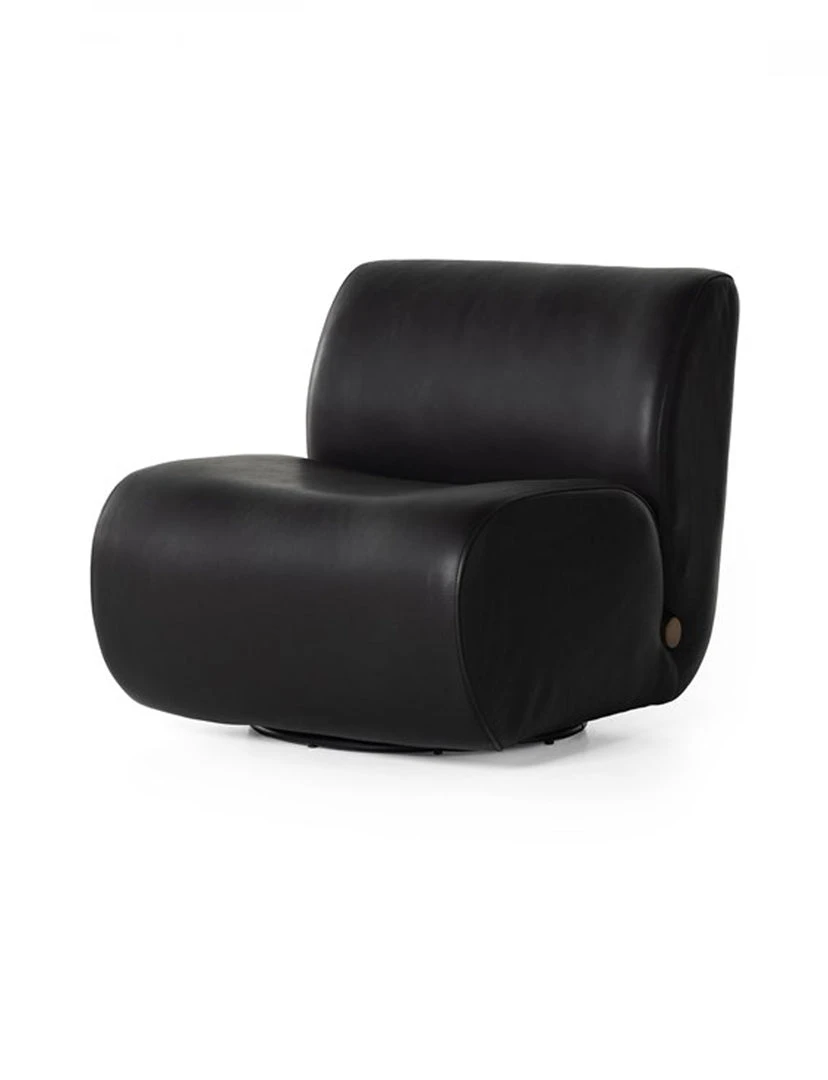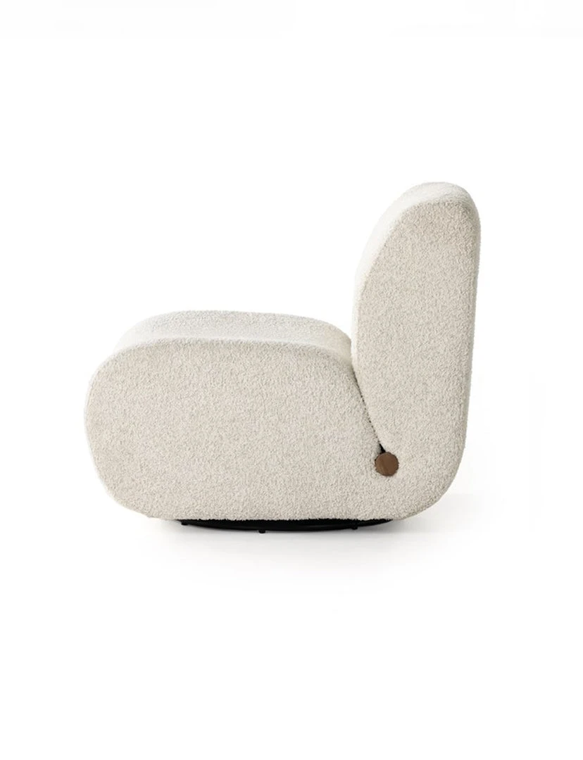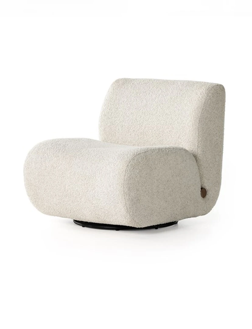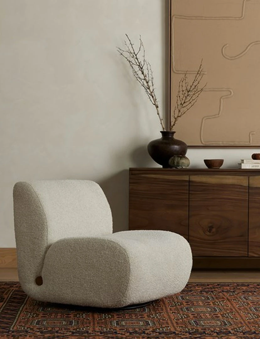 Go big. Textural high-performance fabric covers a curvy, armless silhouette, with a solid oak dowel peeking out for extra effect.