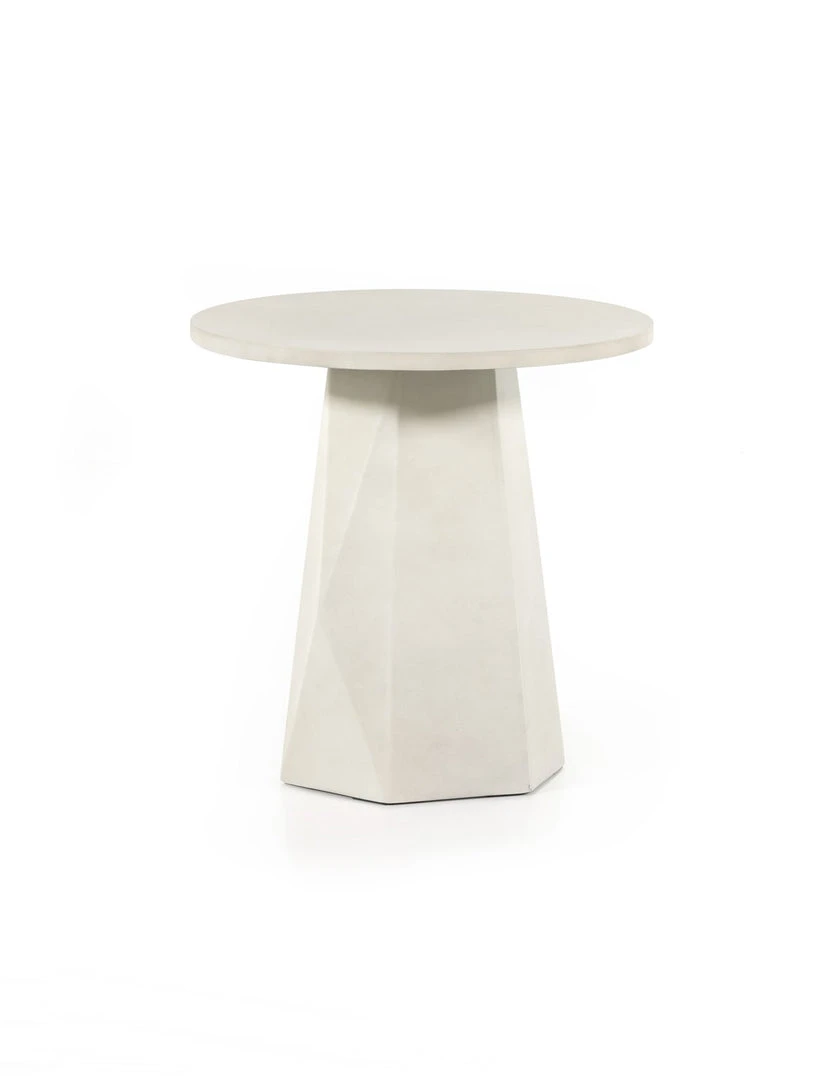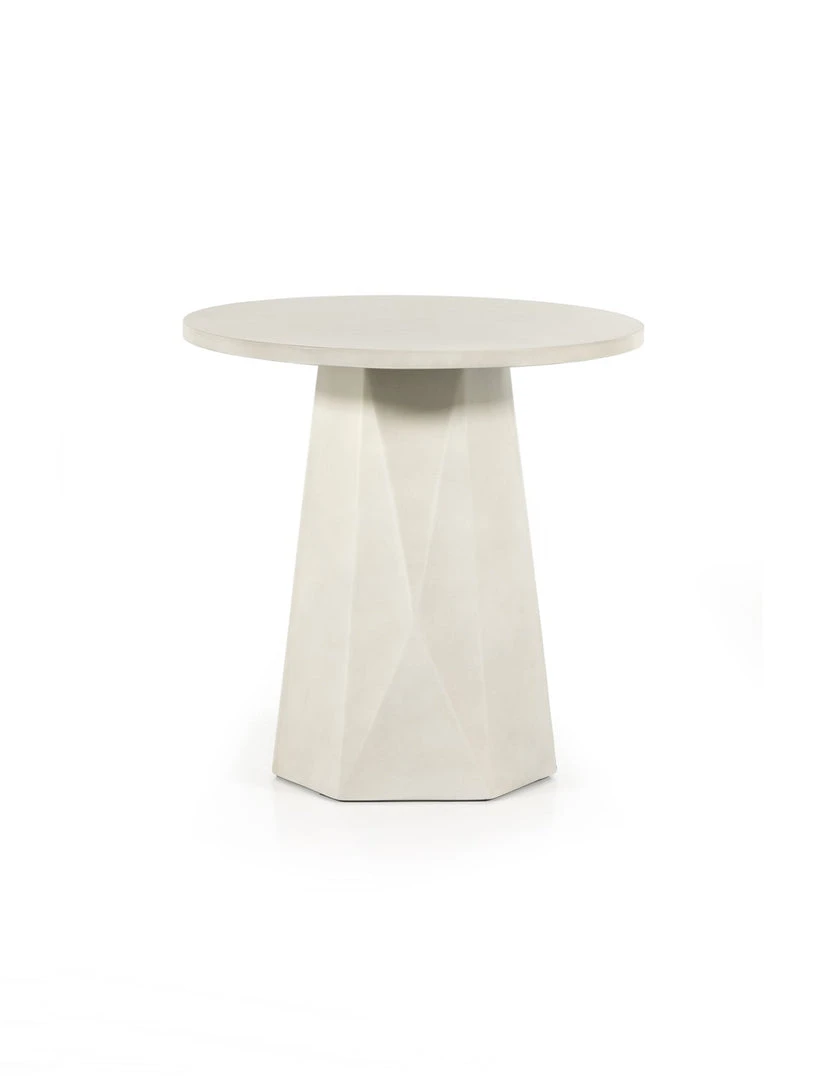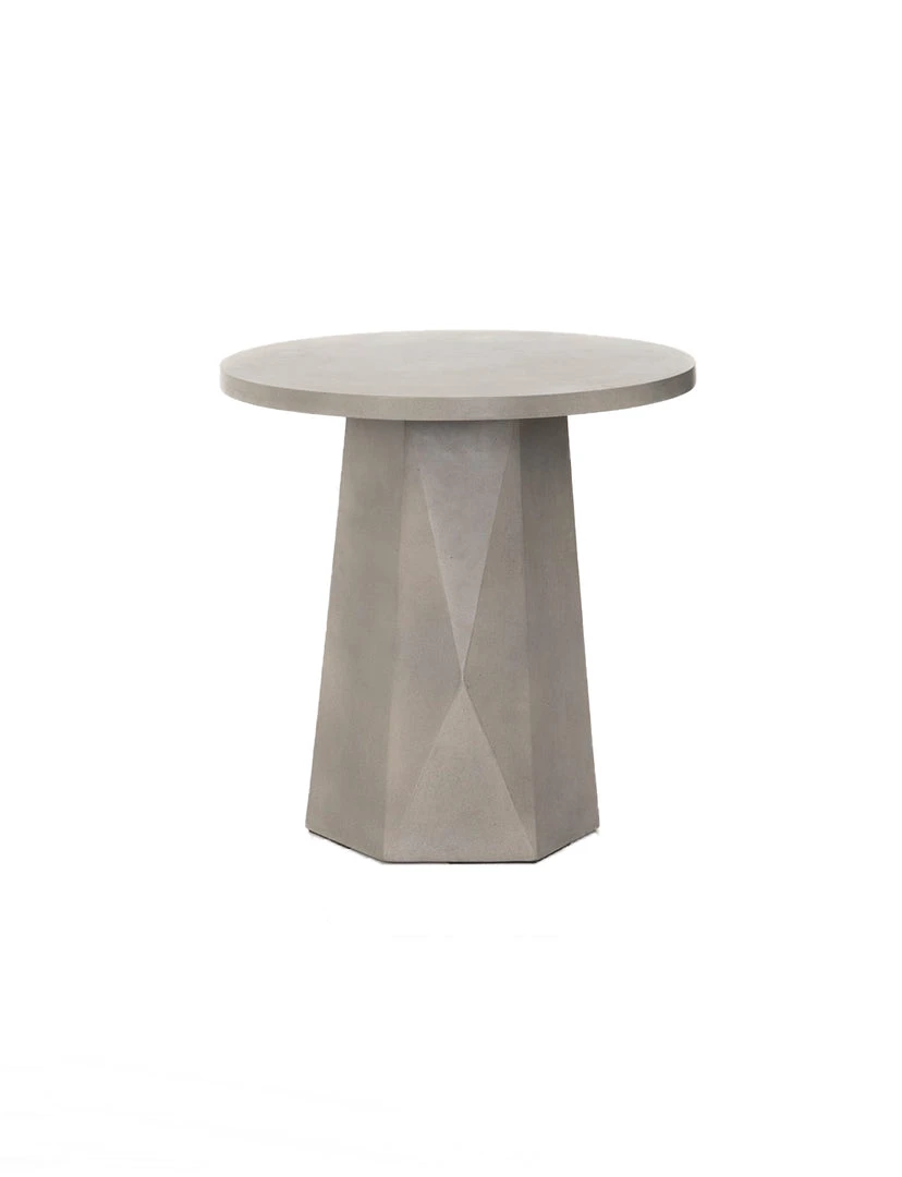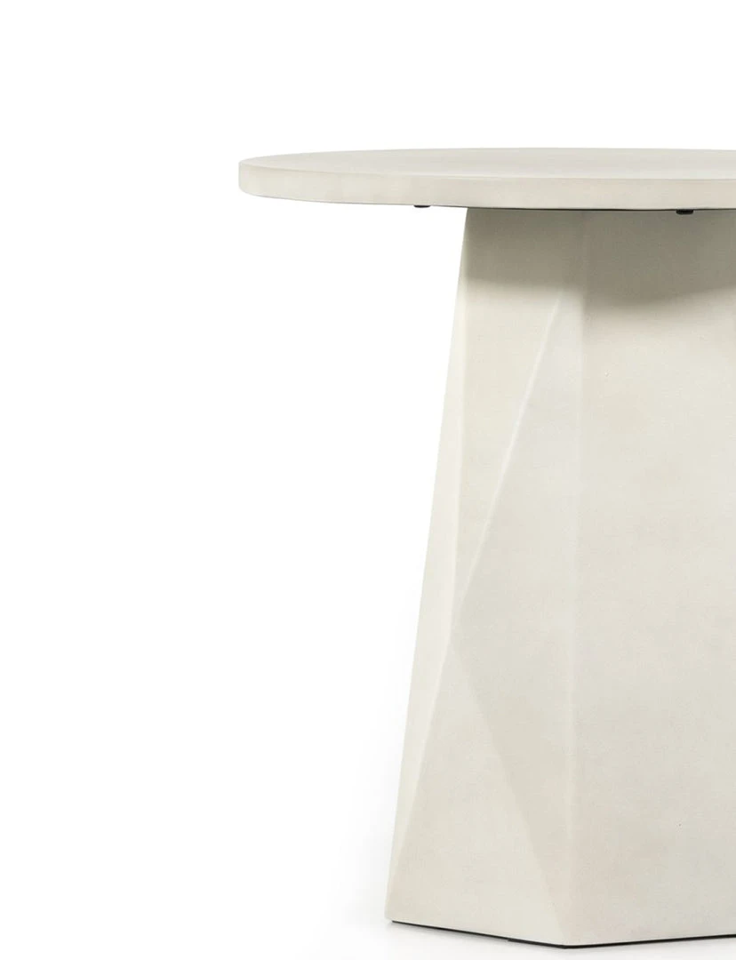 White-finished & Grey concrete forms a faceted base for impact from every angle. A rounded top is ready to make an organic statement indoors or out. Cover or store inside during inclement weather and when not in use.