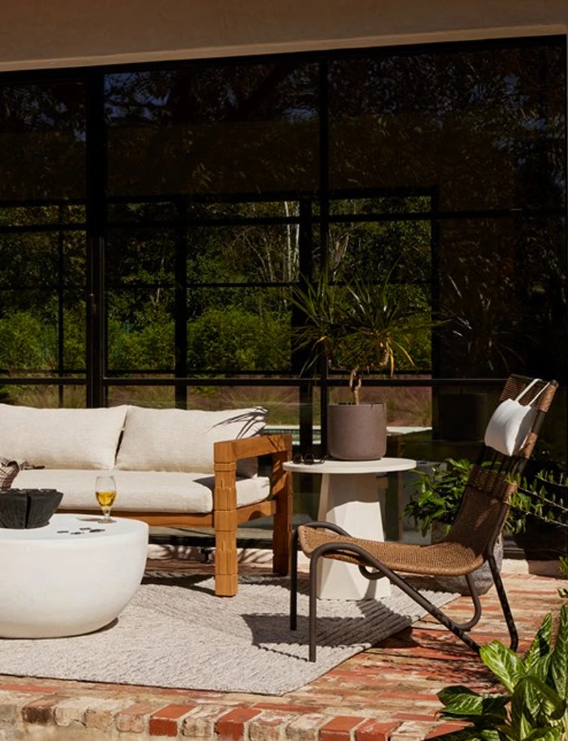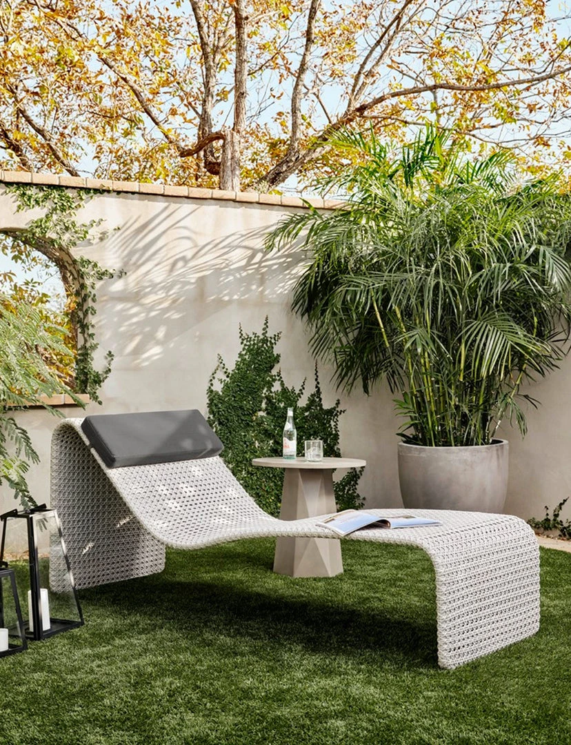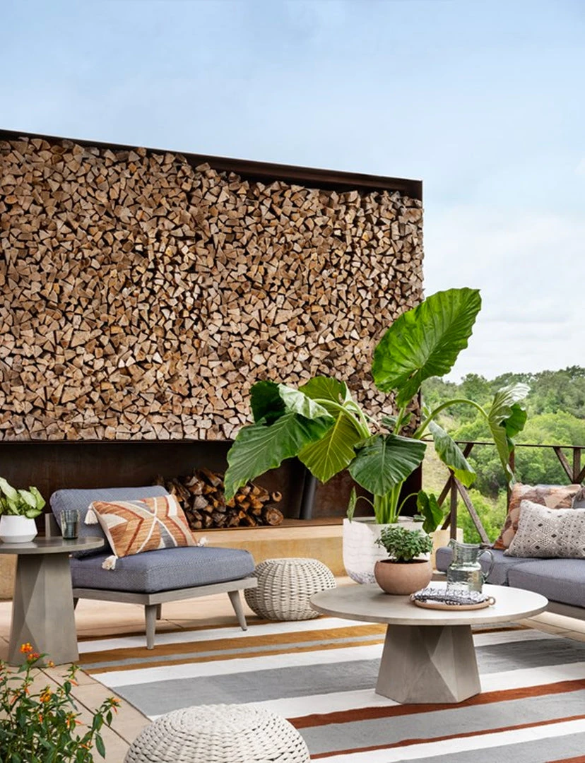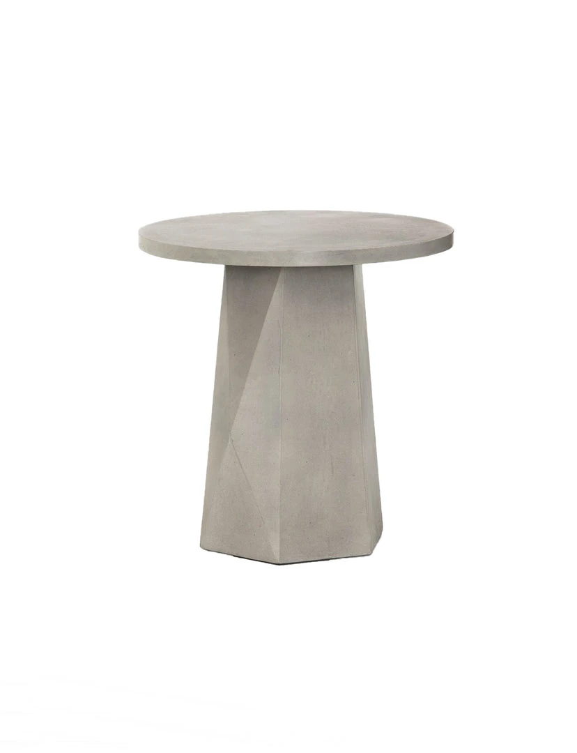 White-finished & Grey concrete forms a faceted base for impact from every angle. A rounded top is ready to make an organic statement indoors or out. Cover or store inside during inclement weather and when not in use.