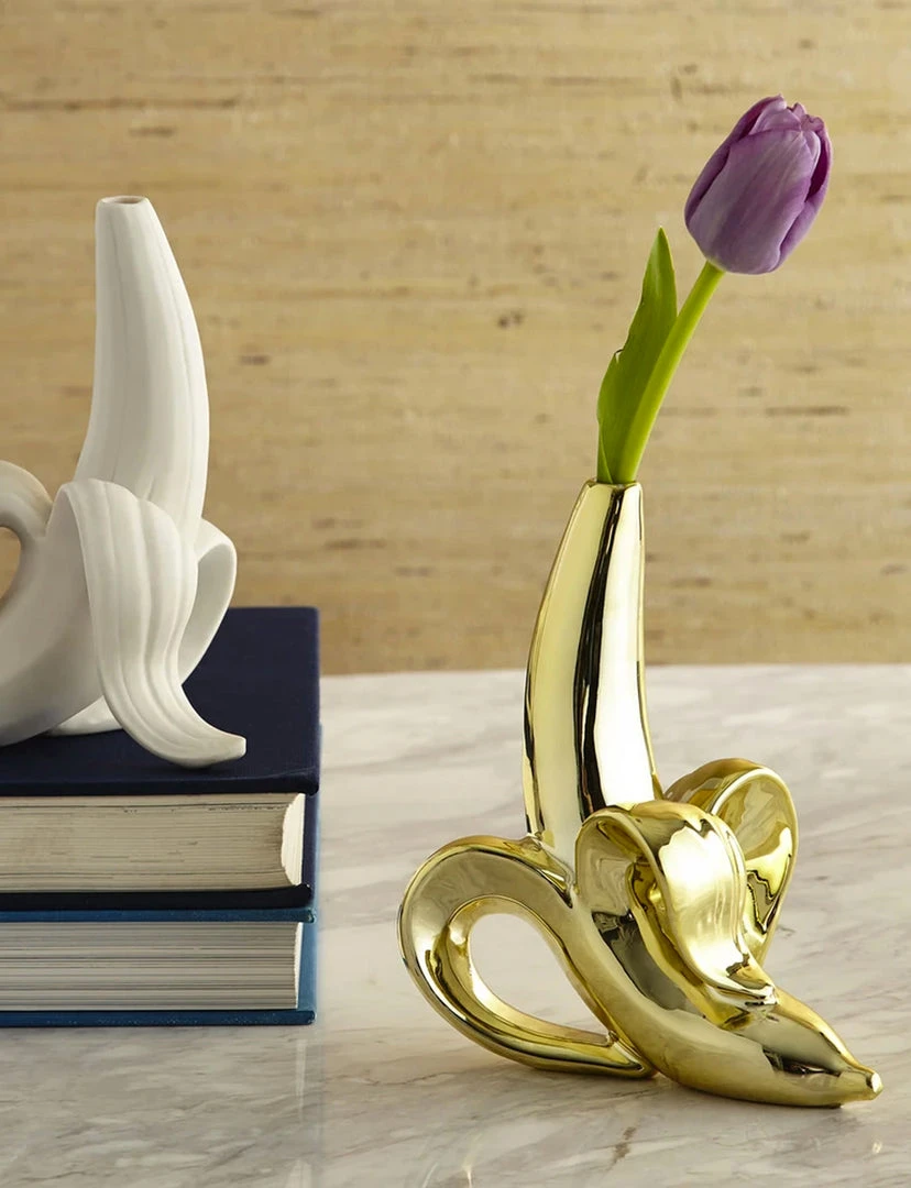 Go bananas over our slyly suggestive vase—surreal in matte porcelain or sparkling in gold glaze.