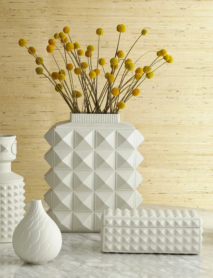 Brilliant for stashing your stuff and displaying on a chic console. Our Charade Square Studded Box marries hard glamour with pristine sophistication—the result is a fabulous and functional dichotomy.