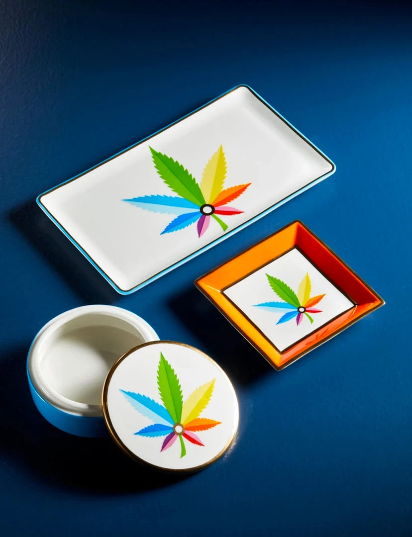 Rainbow-emblazoned accessories for bohos looking for a little quelque chose, our Sinsemilla collection is smoking. Crafted from posh porcelain and lit up with real gold accents, each piece is packaged in a nifty gift box. The perfect presents for a rich hippie host (or pick-me-ups for yourself!).