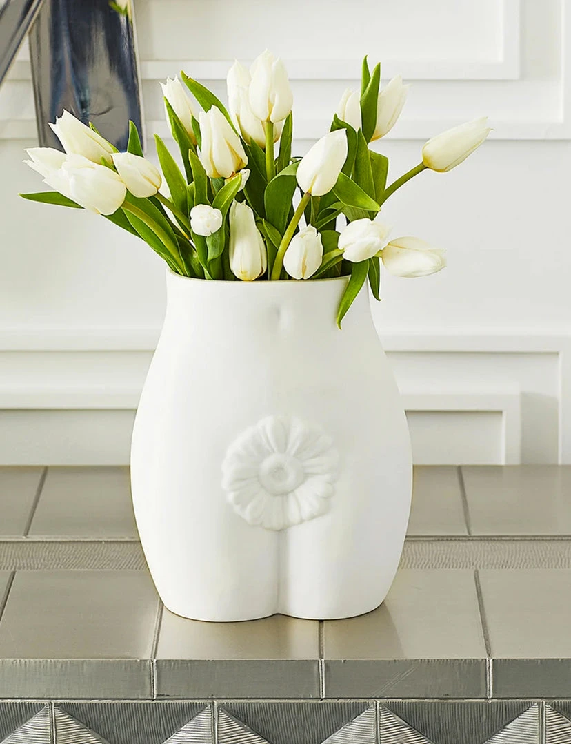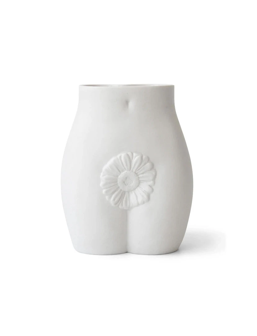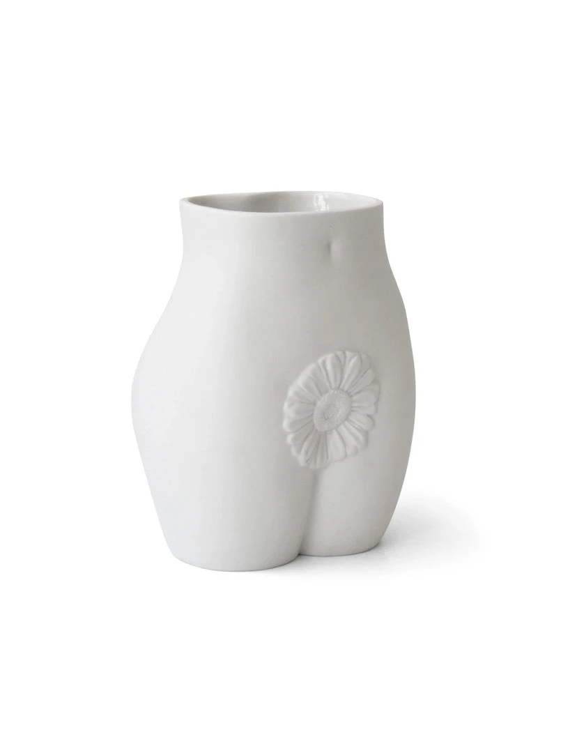 Jonathan throws the models for the Muse vessels and then substitutes our signature geometric relief patterns with body parts—faces, breasts, lips—to create a surreal style. Each piece is made from unglazed matte porcelain to accentuate the forms and is inspired by our favorite artists’ muses.