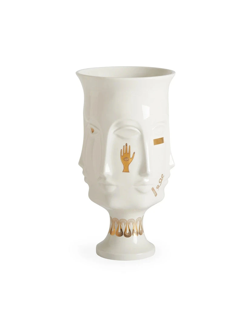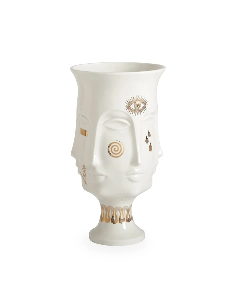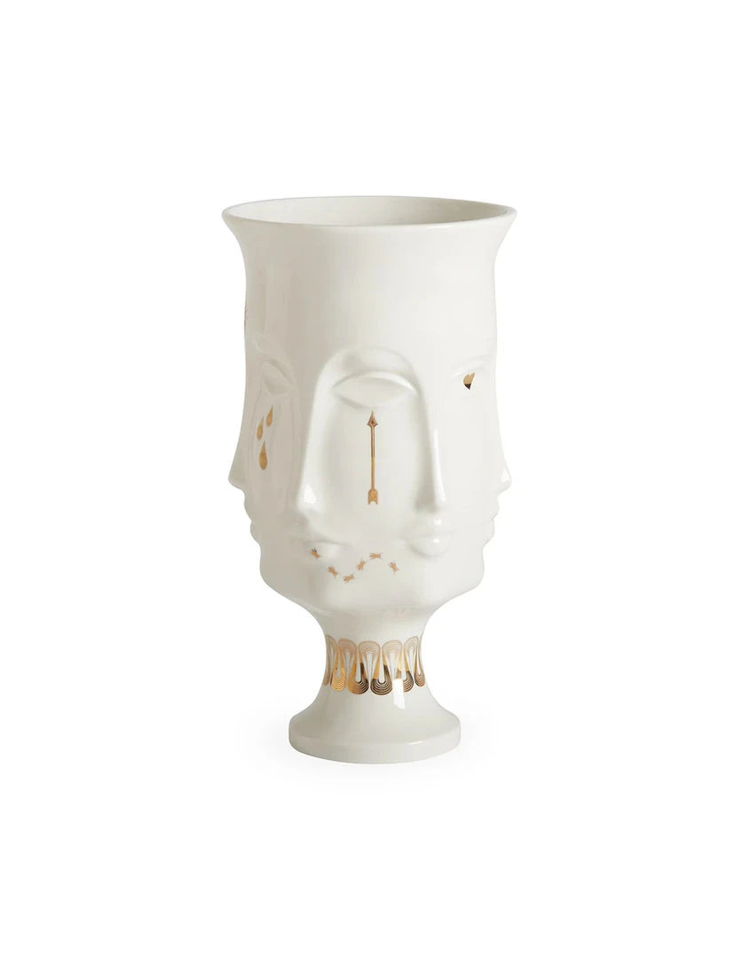 We’ve given our iconic Muse collection a face lift. Actually, more like a de-face lift. Subversive signs and symbols rendered in glittering gold adorn the glossy high fired porcelain pieces—signature favorites with the glamour cranked up to 11.
