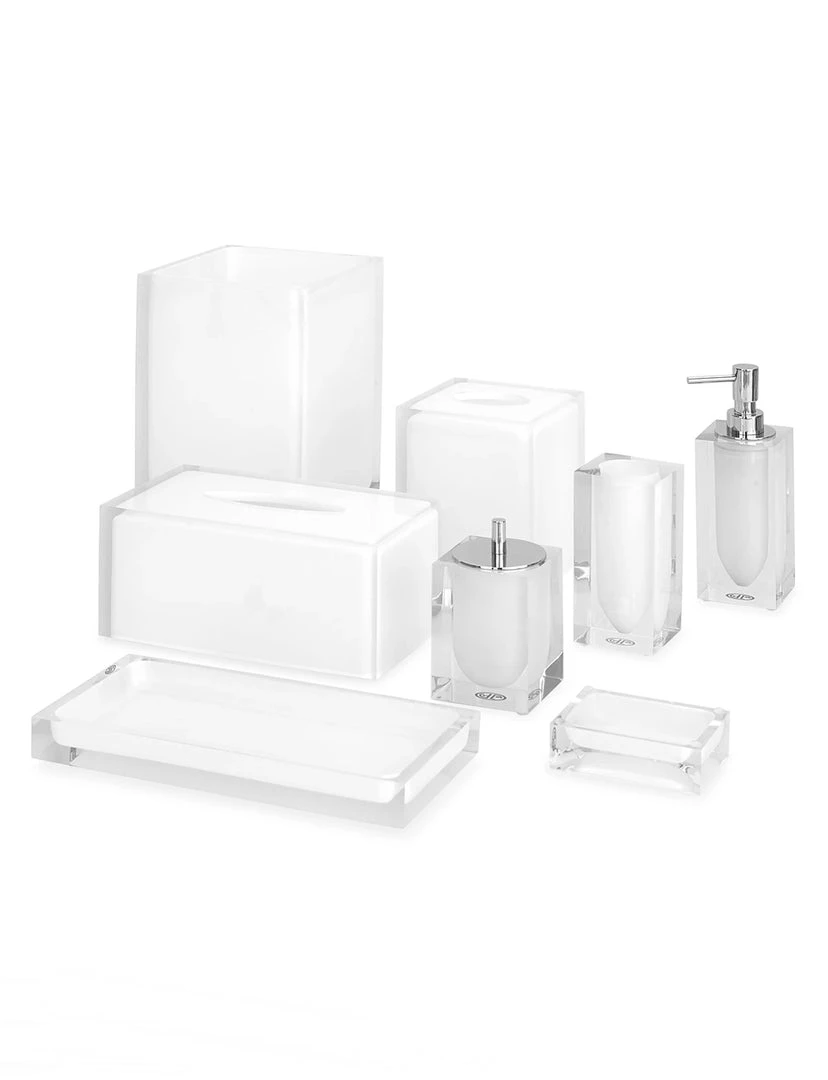 A thick, acrylic bathroom essential with a frosted lozenge interior that gives a starring-role performance in any bath. Woo your loo with luxe accessories fit for a film star.