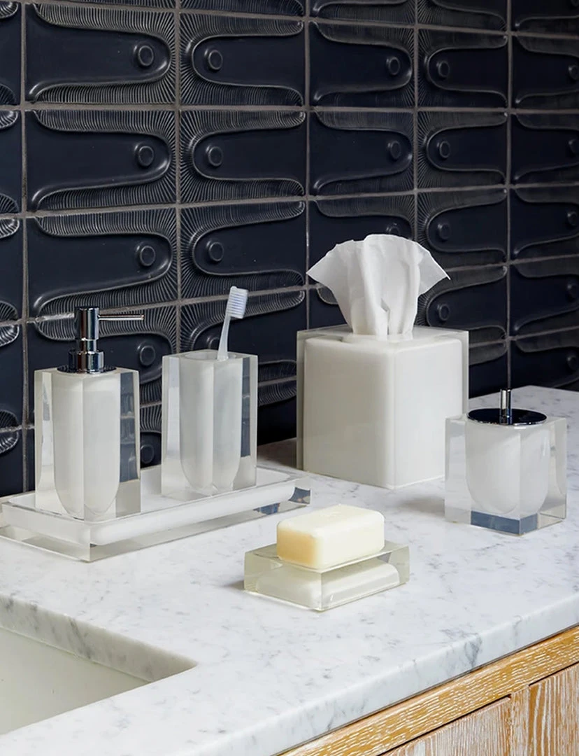 A thick, acrylic bathroom essential with a frosted lozenge interior that gives a starring-role performance in any bath. Woo your loo with luxe accessories fit for a film star.