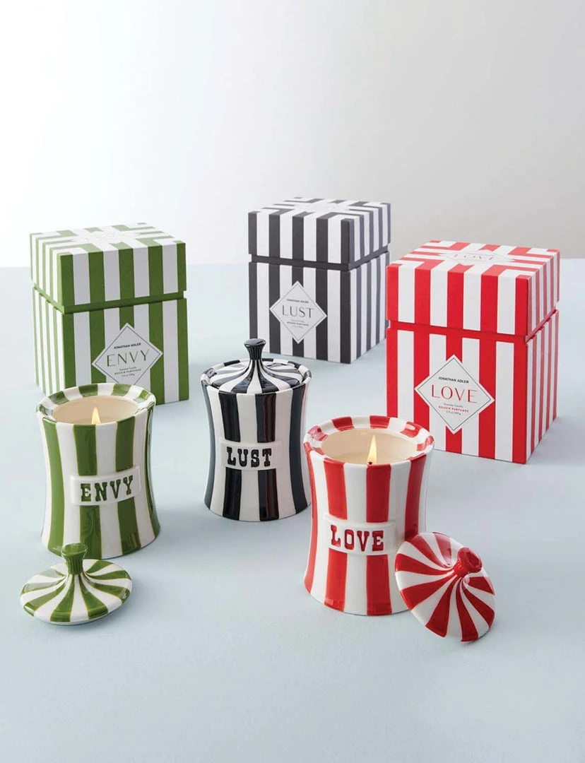 Jonathan Adler matched their iconic Vice canisters with delightfully suggestive scents that celebrate human nature’s greatest hits—Lust, Love, and Envy.