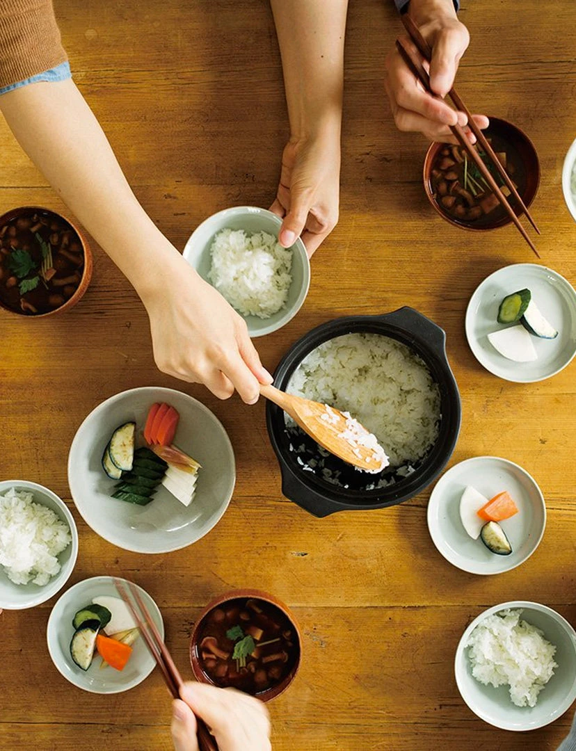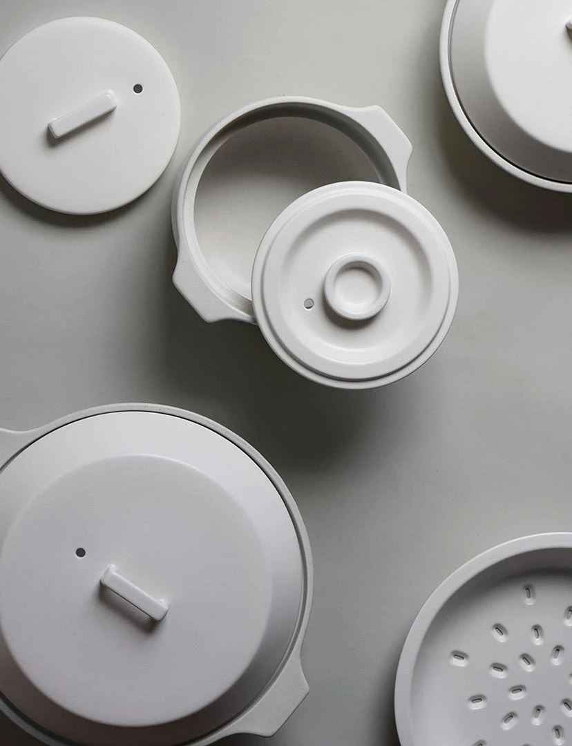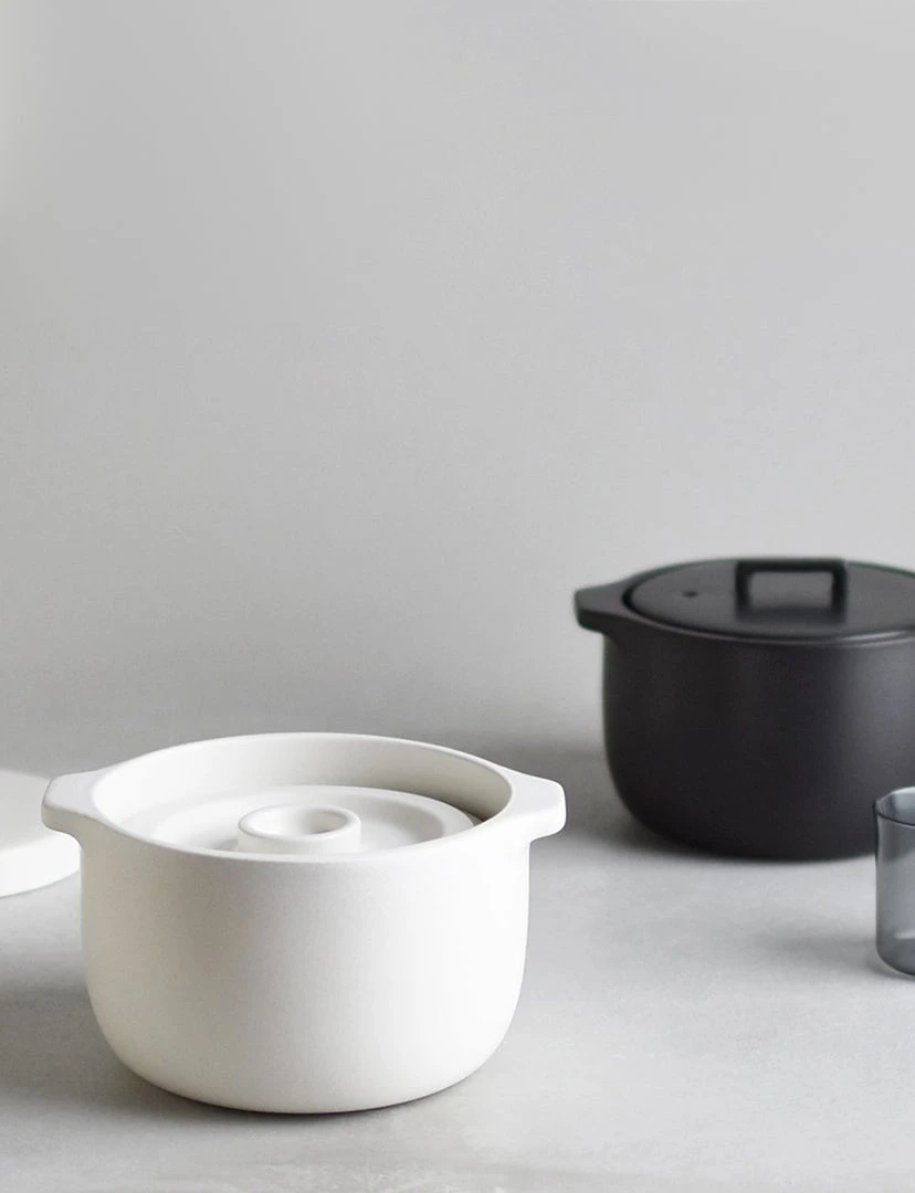 Do not use for deep frying. Dry well before use, or the remaining moisture could cause breakage when heated. Do not heat without water. The handle and lid will be hot when heated. Use mittens to hold. Hold the pot with both hands when carrying as the ceramic pot is heavy. Do not touch with a wet cloth or put in a wet place while it is hot as rapid cooling may cause breakage. Do not heat with water filled up to the rim. Remove the lid when using in an oven as rapid risein temperature may cause breakage. Do not leave the pot soaked in water. Wash with care. Do not use abrasive cleansers or steel wool. Immediately wash and dry well after use, and keep dry when not in use. Product size and shape varies in each item due to manufacturing process. [Before using] As the pot does not absorb water, there is no need to ‘seal’ the pot before its first use. Lightly wash with a neutral detergent. [If you burn the pot] After boiling water in the pot, turn down to low heat, add 1 tablespoon of baking soda, and let it simmer for 2-3 minutes. Turn off the heat, let it cool, and rub with a melamine sponge. [measure cup] AS resin. Upper temperature tolerance: 90℃ / 194℉. Dishwasher safe. Do not use in a microwave. When using a dishwasher, avoid force and weight applied to the measure cup. Wash with care. Do not use abrasive cleansers or steel wool. Do not place near direct fire.
