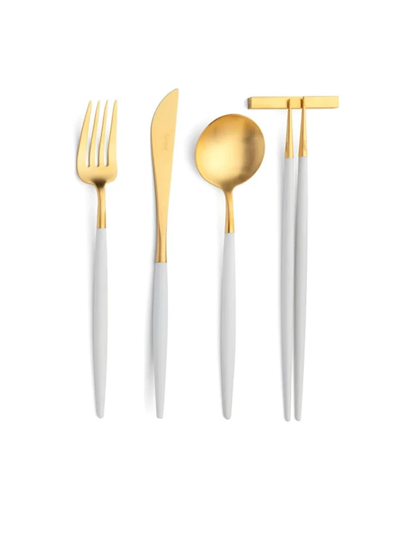 - Material: Highest stainless steel with brushed finish and 24k gold plated coating; sleek resin handle