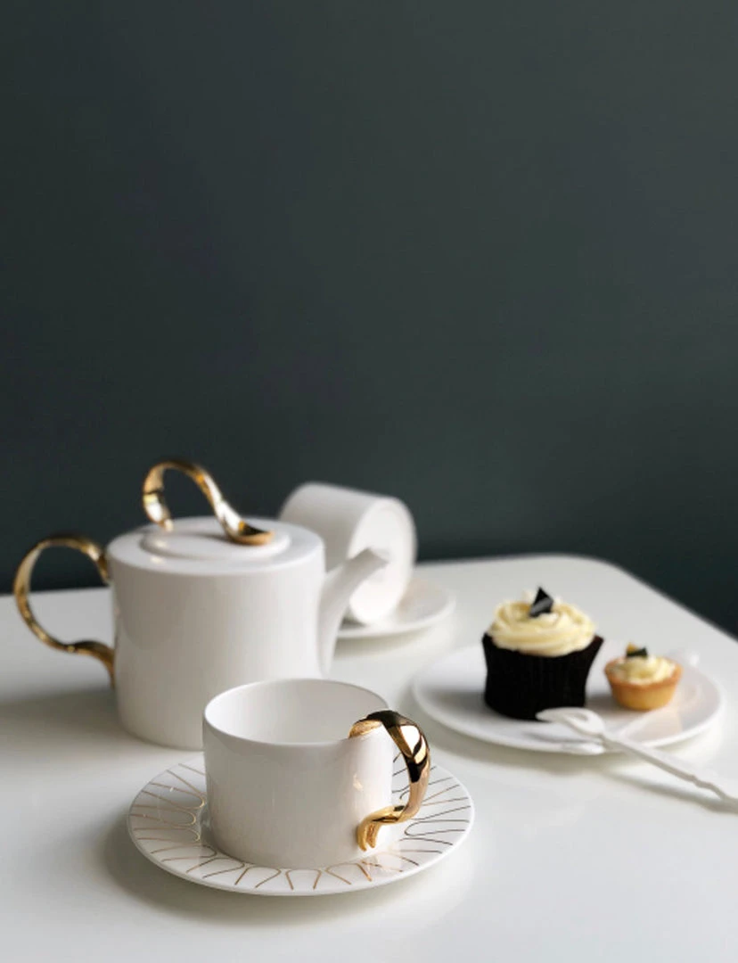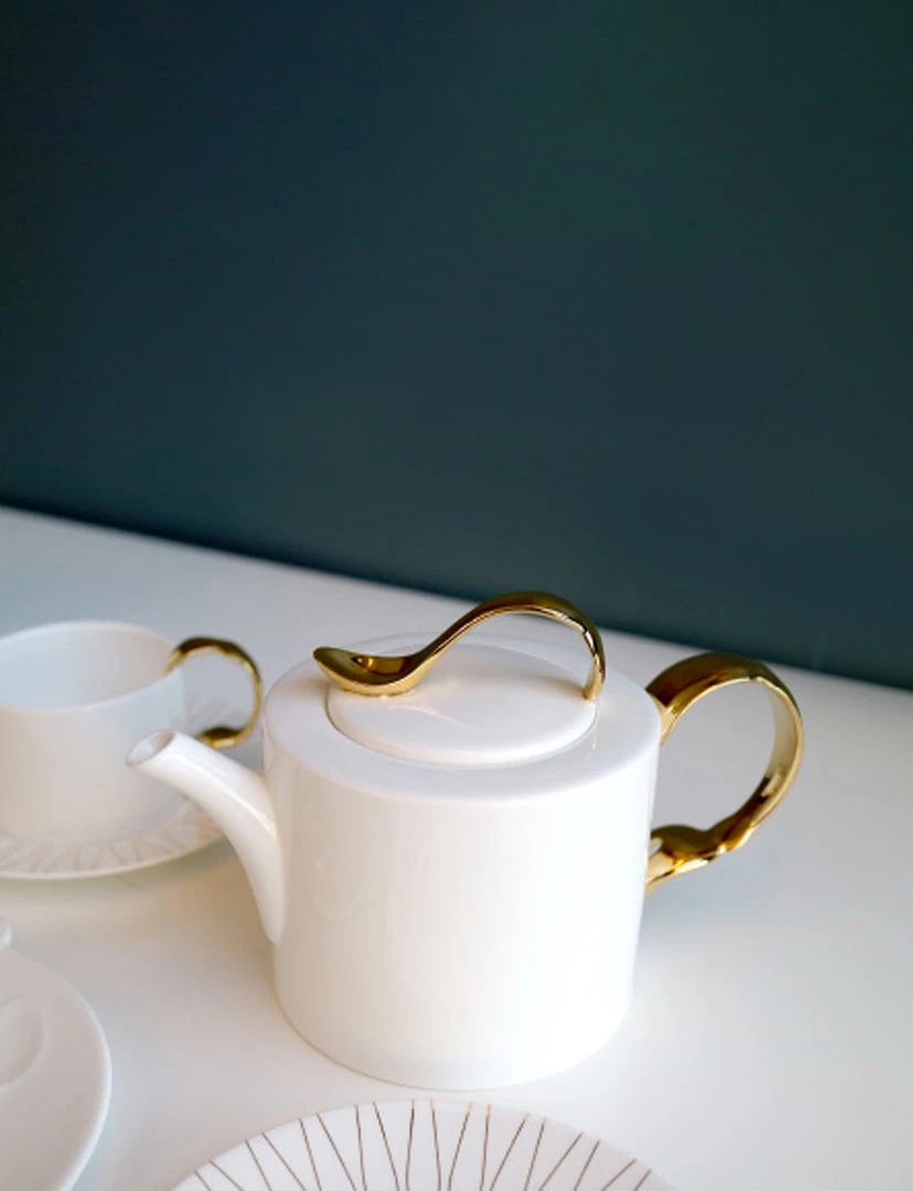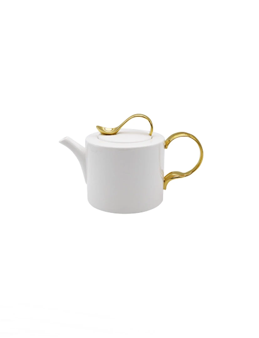 The Cutlery Tea Pot – Our modern teapot design gets its own Cutlery handle . The knob is replaced by a bent spoon which makes for a truly unique design. In the same vein, instead of the traditional handle, we use a fork shaped handle. The spoon and fork are hand painted with 24K Gold, adding a touch of class to the pot. Simplicity with a twist from the Cutlery Collection by Twig New York.