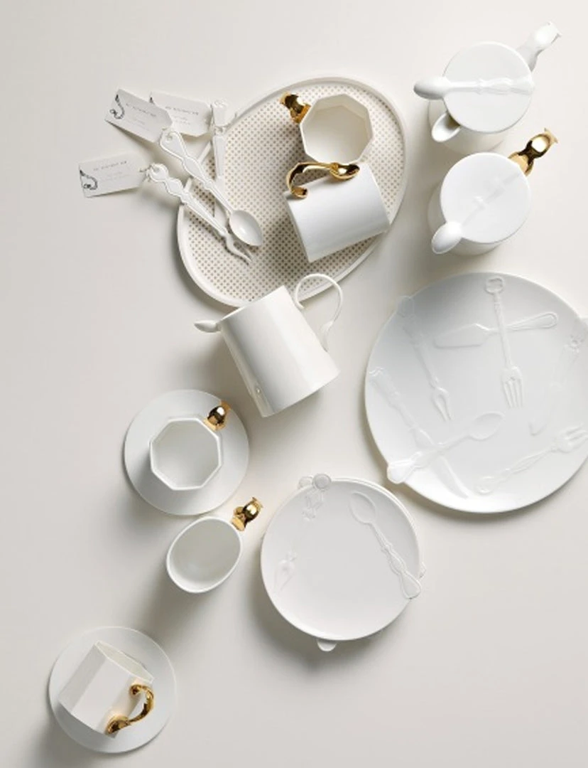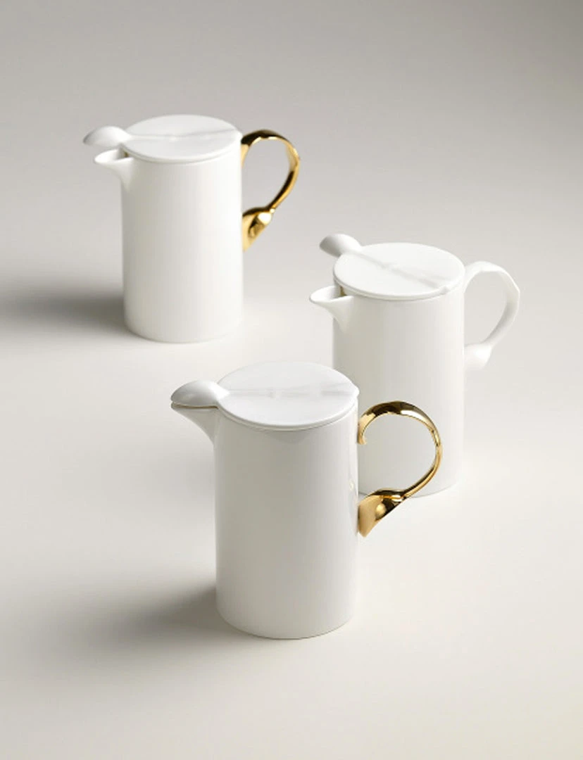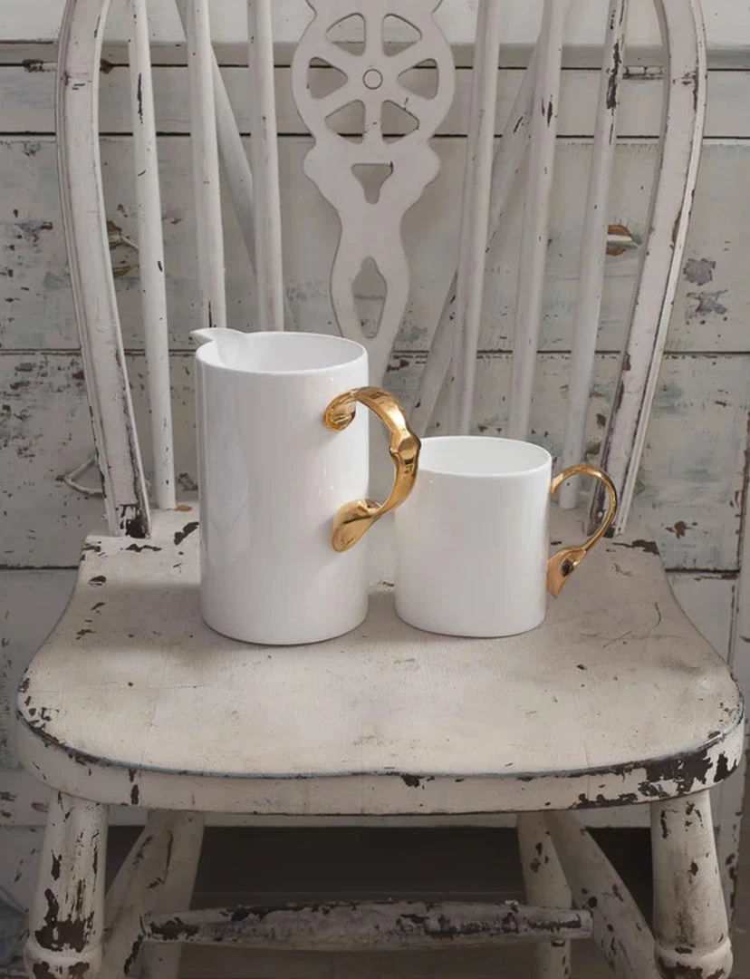 The Cutlery Tea Pot/Jug – Play the perfect host with this unique and gorgeous jug and lid set. Instead of having a simple lid, the design is that of a teaspoon, embossed on the lid surface with the bowl of the spoon acting as the cover for the spout of the jug. Created from the shape of a bent spoon, the handle is hand painted with 24K Gold, adding a touch of class to the jug. Simplicity with a twist from the Cutlery Collection by Twig New York.