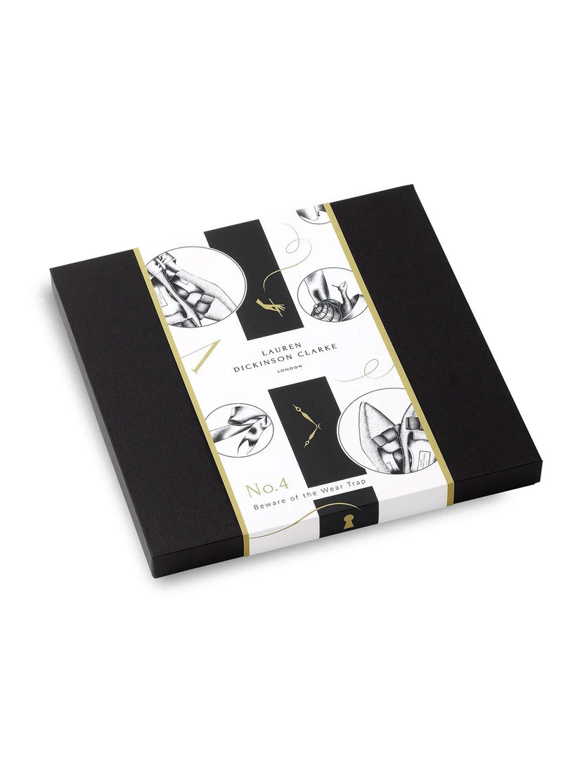 This whimsical design is inspired by Lauren’s time working in the peculiar world of fashion. ‘Beware of the Wear Trap’ was an expression used to warn others away from celebutantes, usually ones on the prowl for free garments to wear to their next stylish soirée. The bear trap in this illustration symbolises the trappings of fashion and (dare we say it…) narcissism.