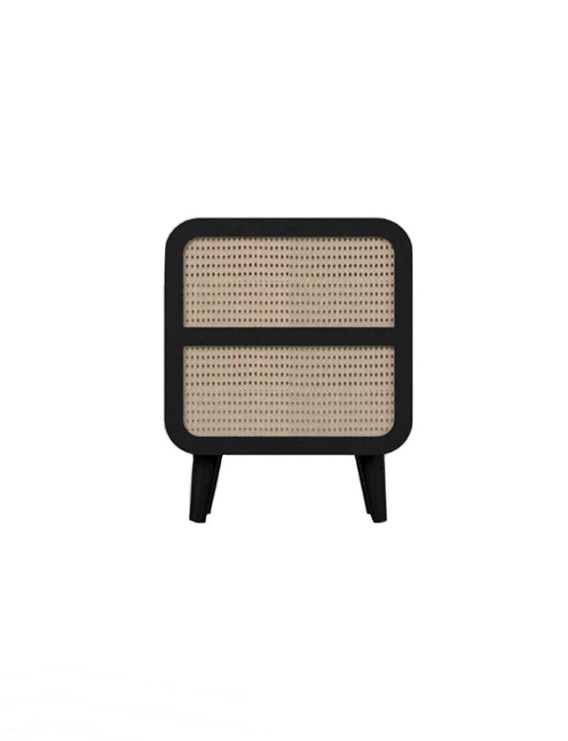 Modern design with some rustic, country flair defines this piece. The mango wood frame is coloured a striking black that highlights the light brown and natural tones of the bamboo cane wickerwork that fronts this nightstand. Crafted with care using natural materials, this sturdy and stylish piece brings a splash of rustic living to your home.