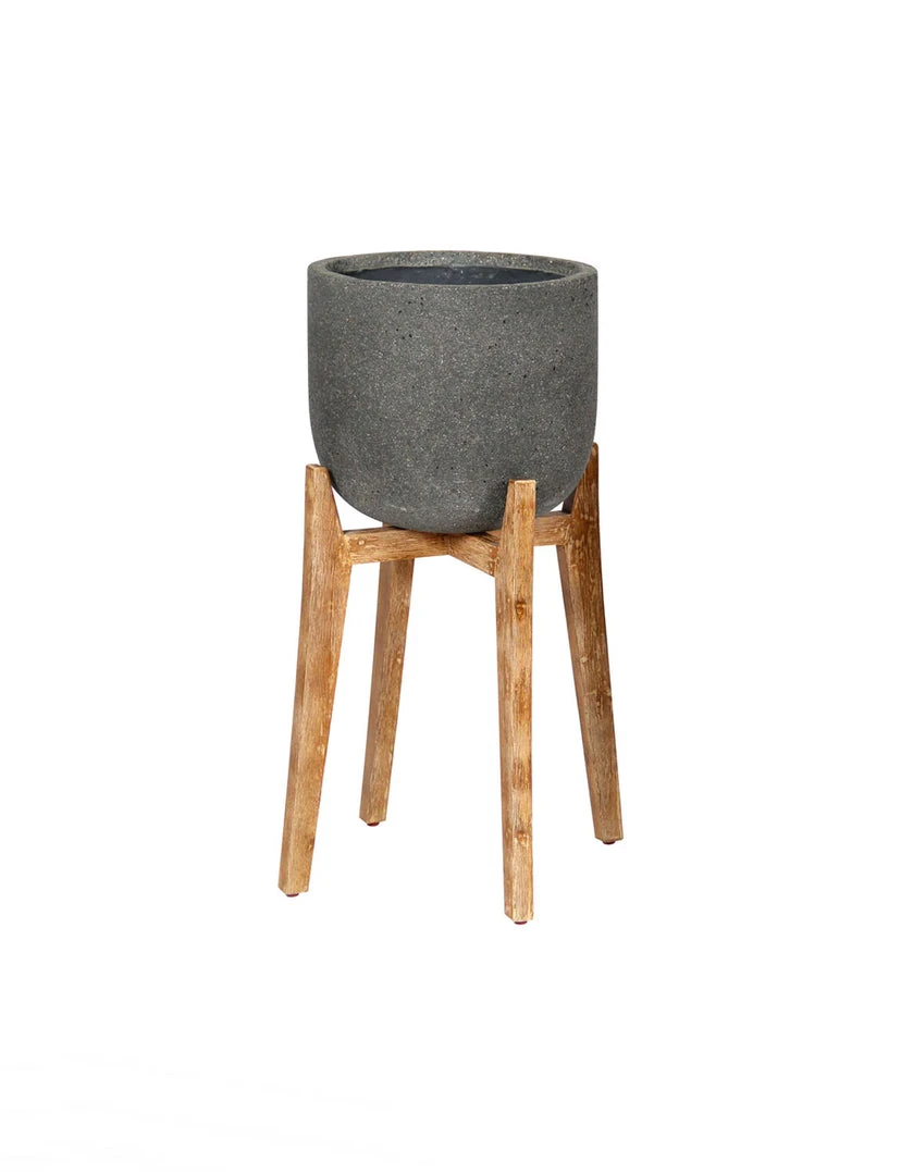 It is simple and elegant. Great for space that needs the extra touch. With the acacia wood base and Ficonstone pot, this piece is suitable for indoor and outdoor use.