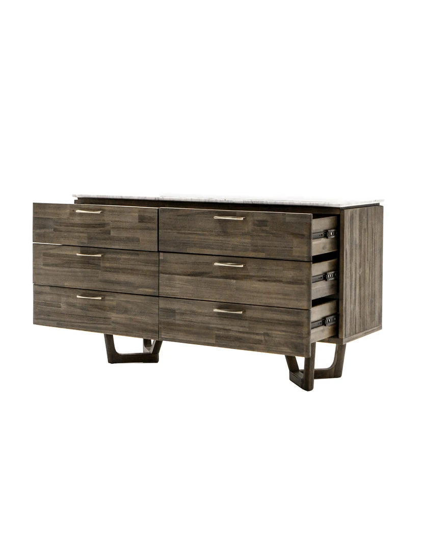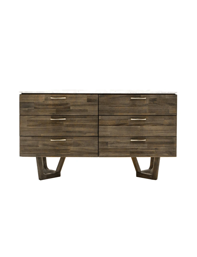 - Feature: White Carrara Marble Top, Solid Acacia Wood, 6 Drawers
