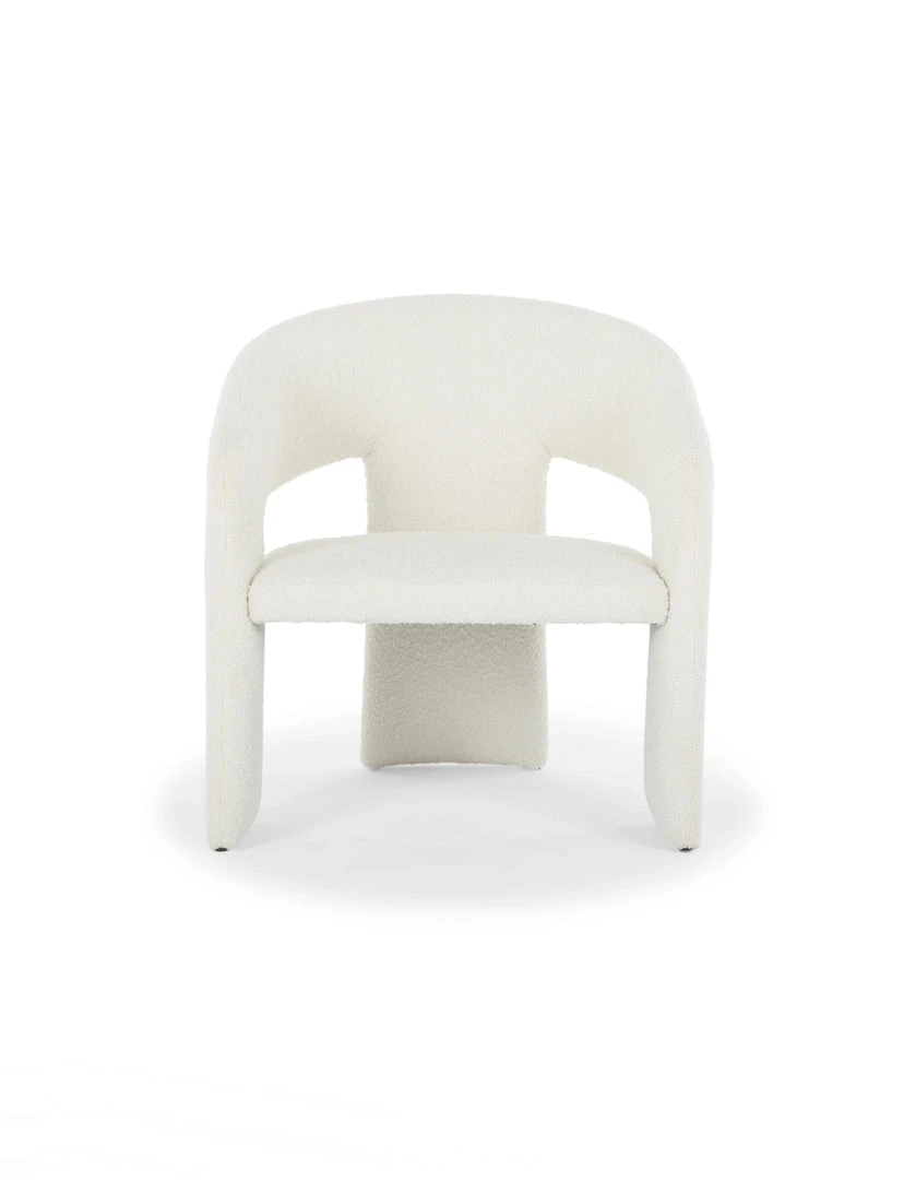 Sculptural and modern, this three-legged accent chair makes a striking statement. This piece features a clean, sleek design and eye-catching negative space that is sure to impress.