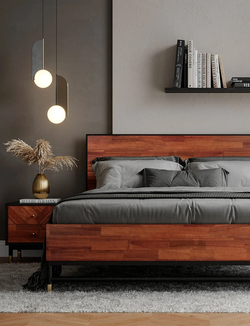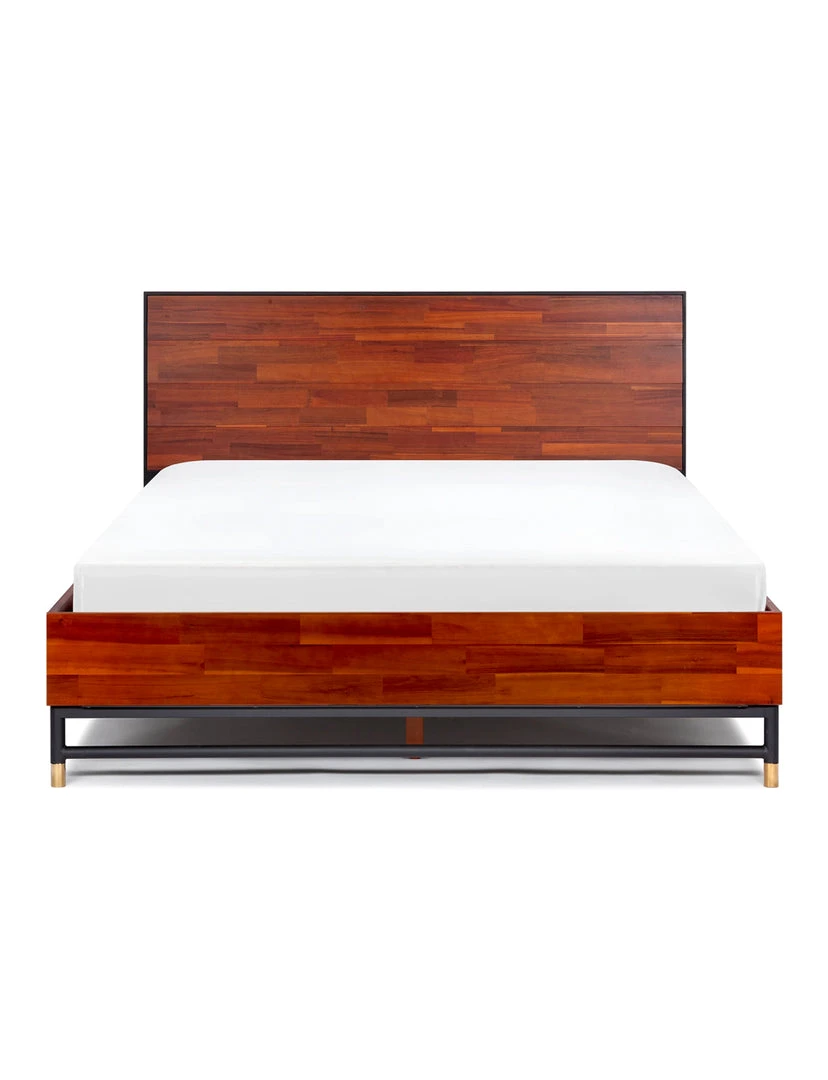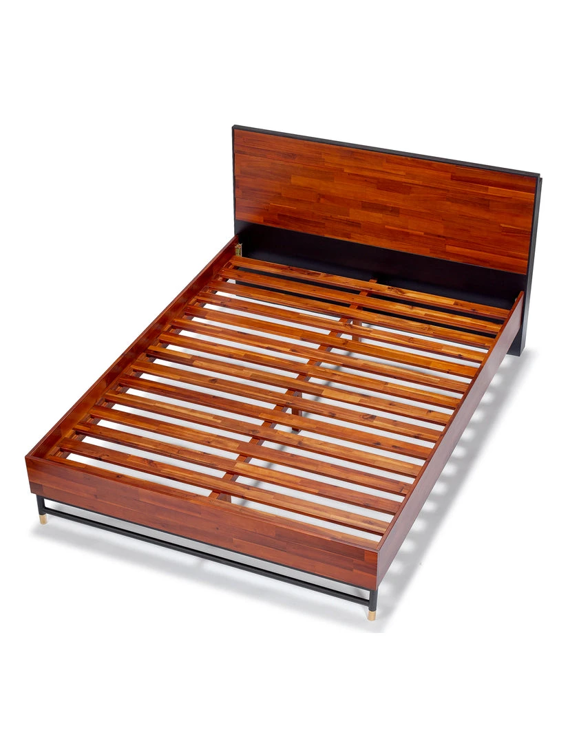 A modern take on a traditional design, our Javis Queen Bed’s relaxed natural look provides textural contrast to its black finish headboard. The head in two different heights and the frame made from solid wood sit atop legs for a look that’s built to last.
