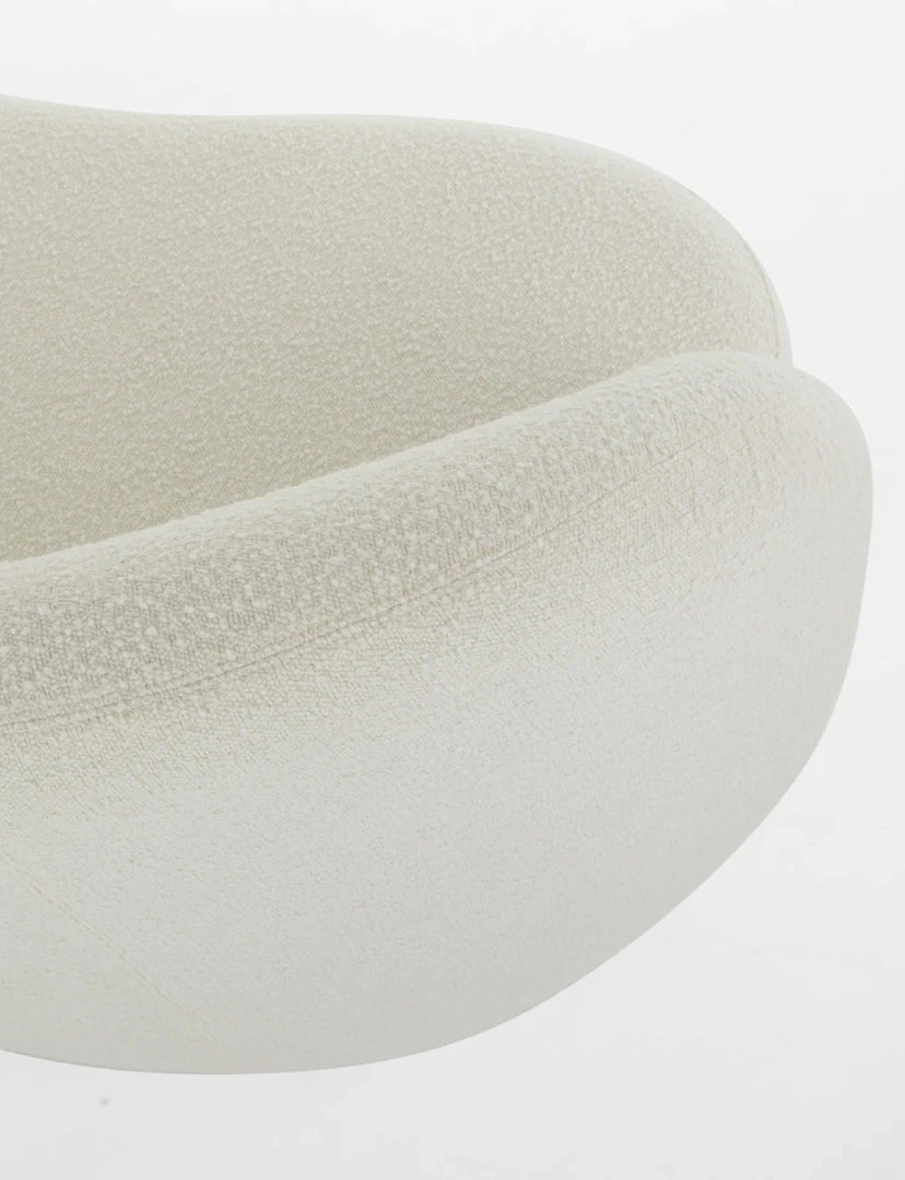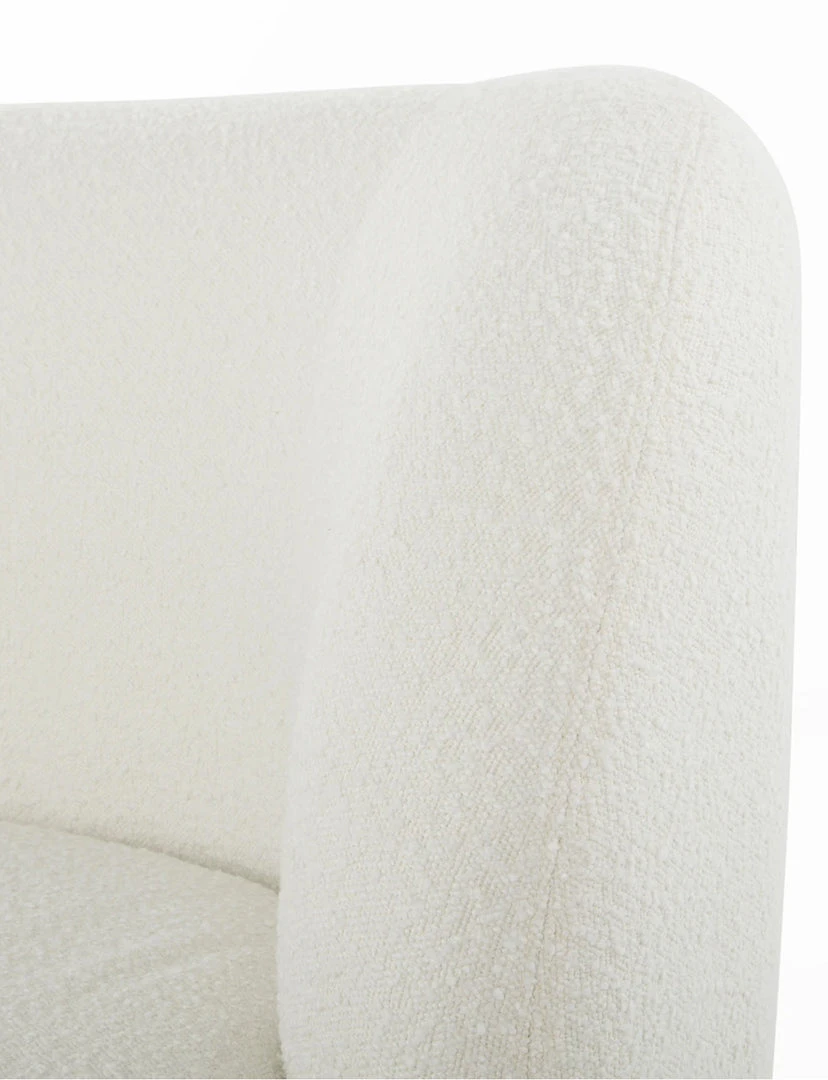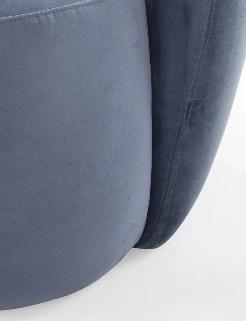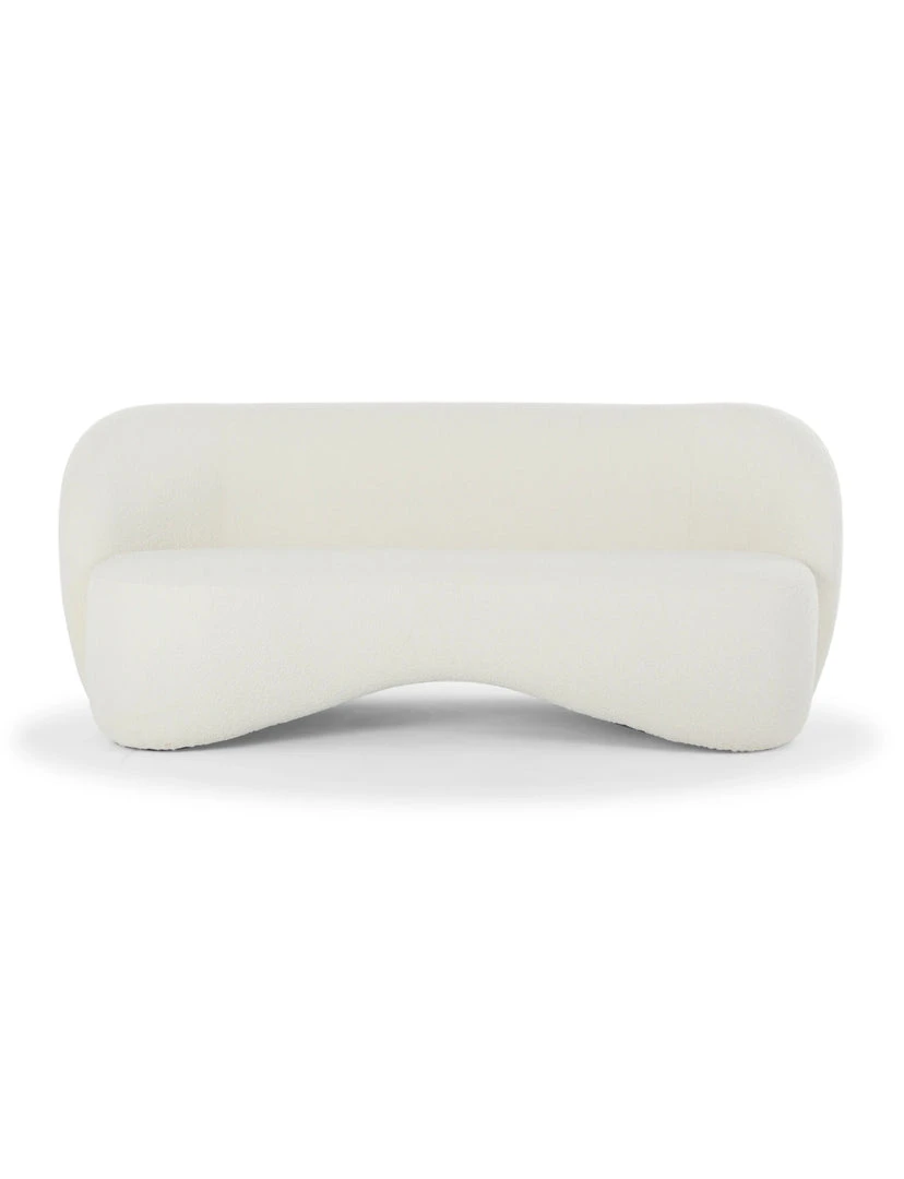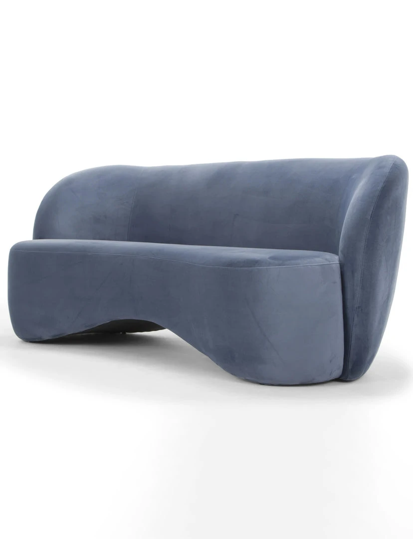 This elegant piece is sure to stand out in any home. The Suki Sofa is made up of soft curves, making a simple yet striking silhouette. Its sculptural design puts a modern twist on a classic design. Available in your choice of soft blue velvet or textured white fabric.