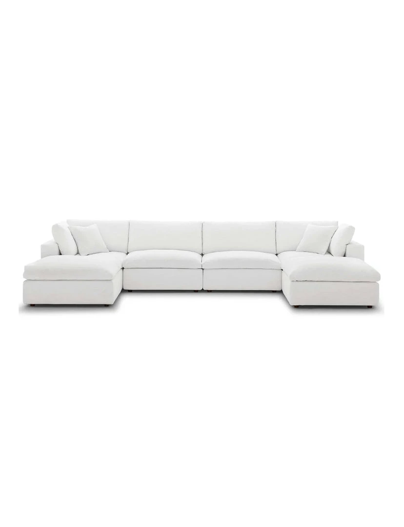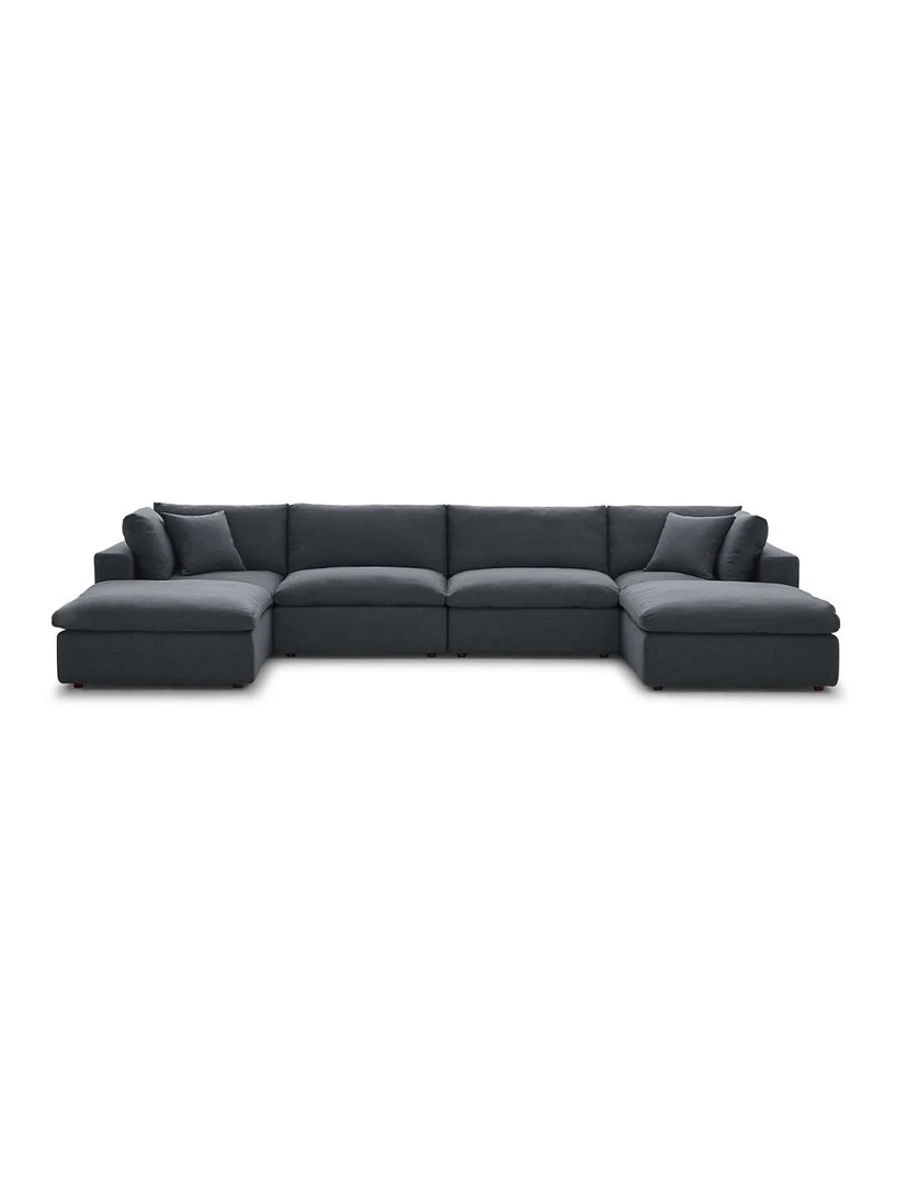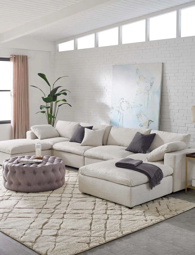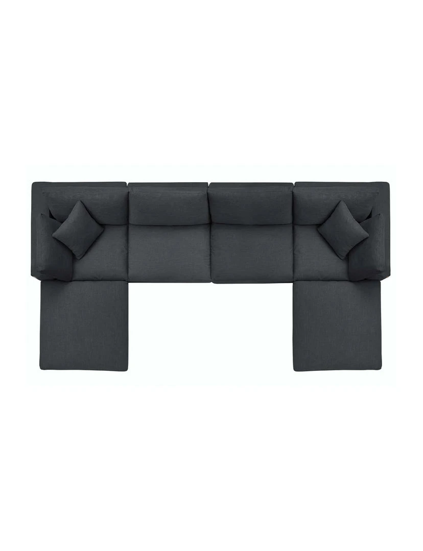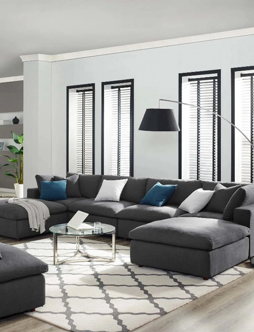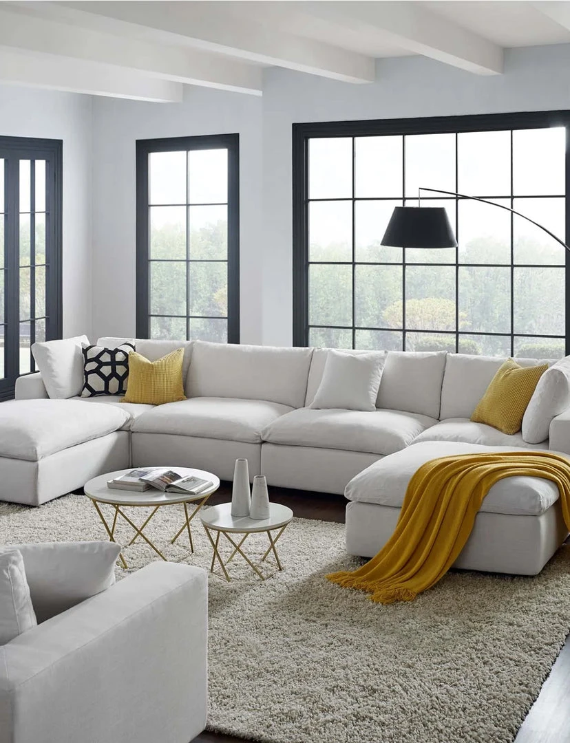 A haven for cozy relaxation, Cody features plush comfort, clean-lined design, and spacious profile, that makes an attractive statement in the modern home. Upholstered in soft polyester and linen fabric, this living room set comes with solid wood construction and cotton and down cushions for a luxurious sink-in feel. Cody comes with generously padded down feather and cotton cushions, and padded foam bases, making this sectional sofa collection perfect for the living room, family room, or game room. Made for sprawling out or curling up, Cody beckons you and guests to sit and stay a while. Includes plastic foot glides.